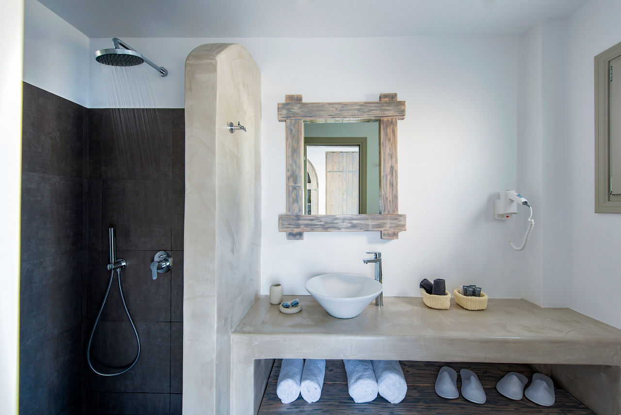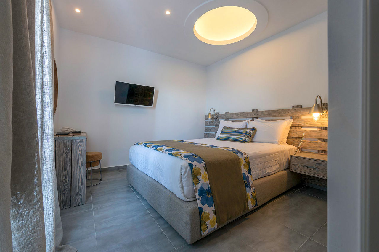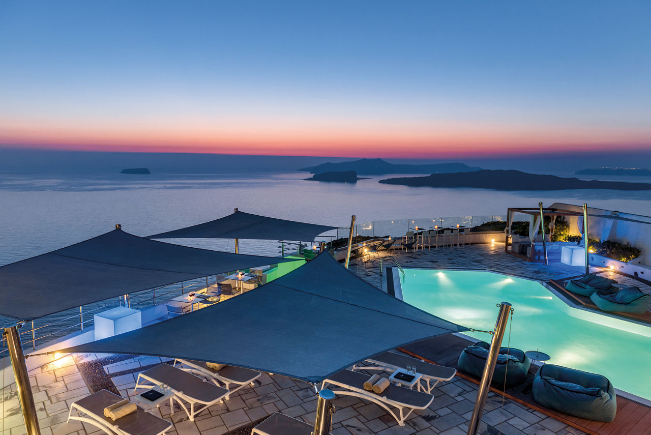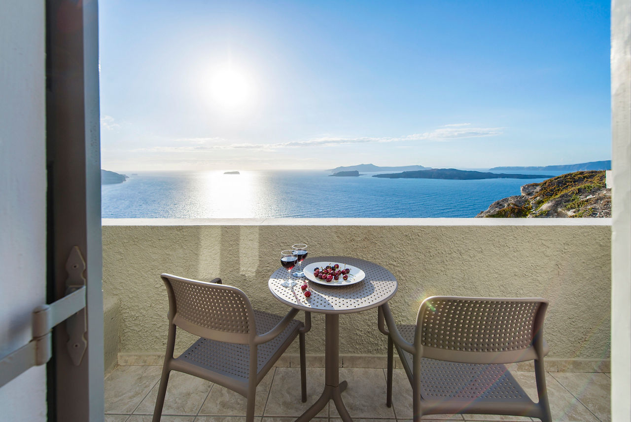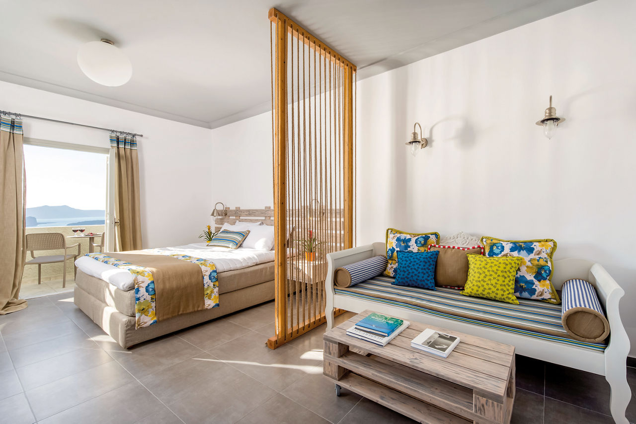 Fresh, bright décor characterises the design of Caldera's Dolphin, a luxurious hotel situated in a stunning clifftop location – as its name suggests – overlooking the caldera. From the outdoor pool and spacious sun terrace, you’ll have incredible views of the sun-soaked landscape and seafront. The à la carte restaurant is on the same panoramic platform. As you’ll be on the west coast of Santorini, you can expect spectacular sunsets to illuminate the evening sky. It’s also just a short journey to the charming village of Megalochori. Discover the local wineries and tavernas, or head north to enjoy the bigger selection of shops in Thira.