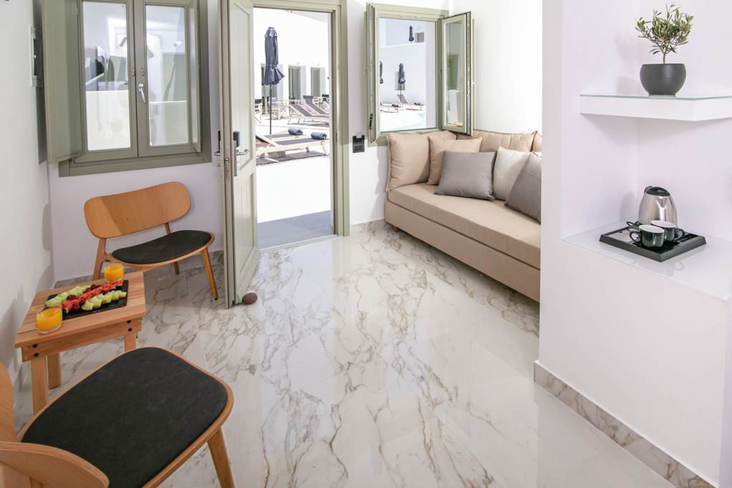 Tucked away in the whitewashed village of Mesaria, Kallos Imar Boutique Hotel allows its guests to experience the hidden side of Santorini. Beautifully appointed rooms are luxurious and minimalist in style, housed in traditionally Cycladic buildings that are dotted around the pool area. Enjoy long languid days by the pool and there's also a bar and restaurant on-site serving drinks and light meals all day. The hotel is perfectly positioned for exploration too; a number of tavernas are within walking distance and the island capital of Fira and the beaches of Kamari are all a short drive away.