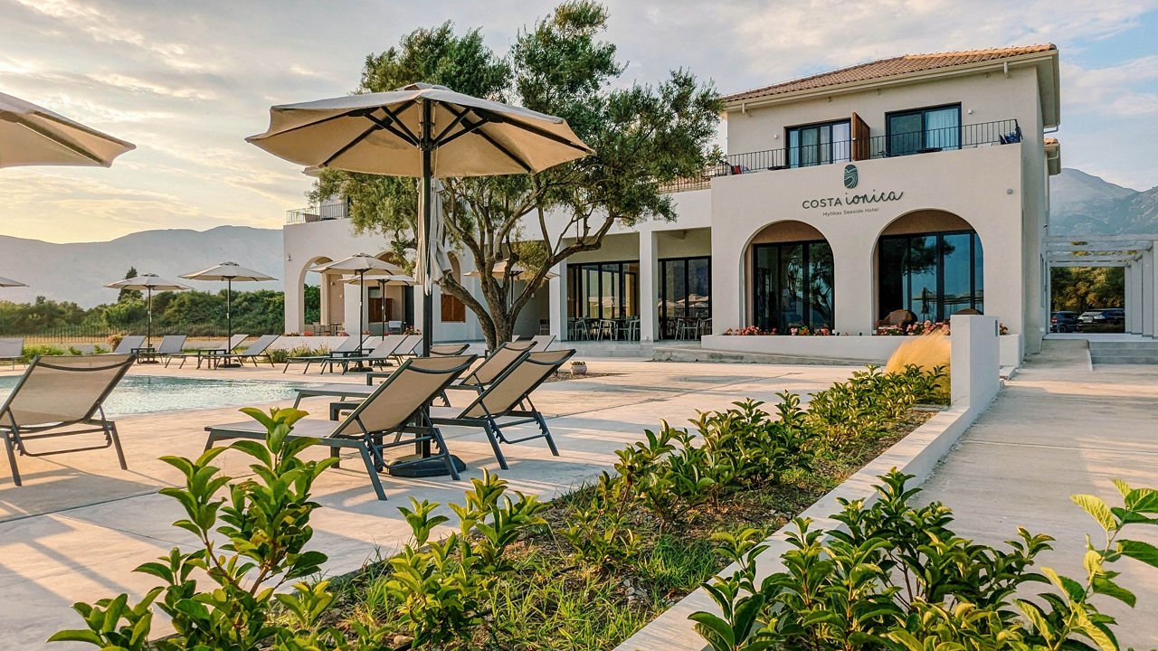 Ready to switch off and feel carefree? Costa Ionica Mytikas Seaside Hotel is just the place. The family-run nature of this charming hotel flows throughout; from the welcoming atmosphere, through to contemporary rooms which are adorned with artwork created by the family. Footsteps from a pebble beach, you can expect incredible panoramic views - you can even see Kalamos island! Every corner of this modern hotel feels calm and tranquil, making it the perfect spot for unwinding. Whether you're lounging poolside, or heading out to explore Preveza, this chic hotel is just the ticket for laid-back ambiance and seaside charm.