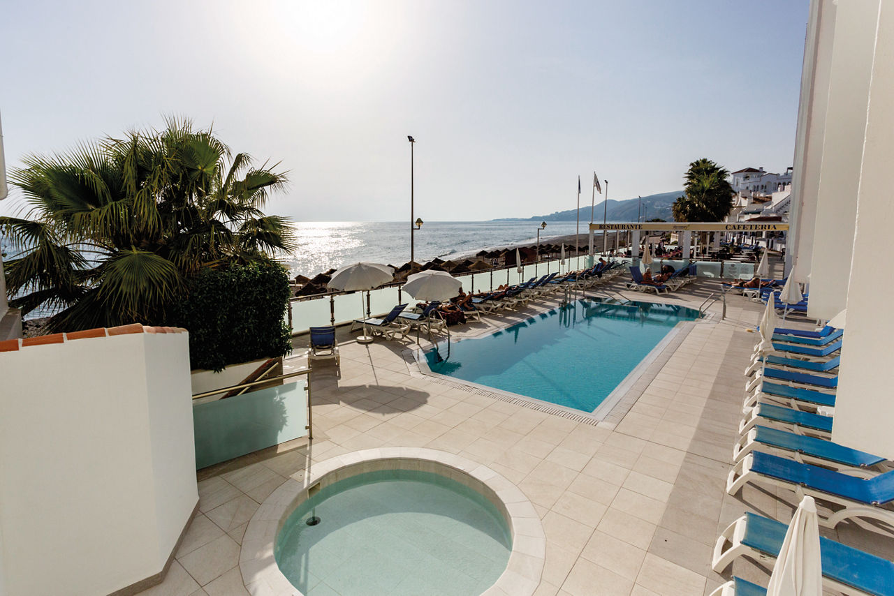 Enjoying spectacular views of the Mediterranean, the Hotel Perla Marina is a great base to explore the pretty town of Nerja. Spend your days exploring the streets and squares lined with charming tapas restaurants and local bars or head to the beach to soak up the sun. Offering quality accommodation and a relaxing atmosphere this hotel is ideal for couples and friends looking to enjoy the local charm of the resort.