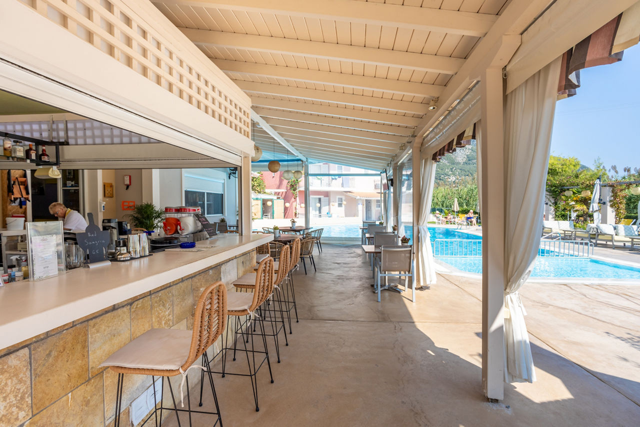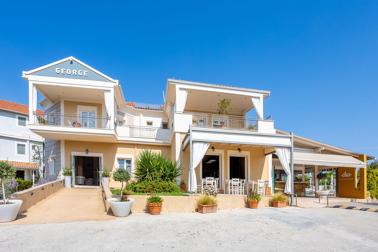 Close to the beautiful resort of Nidri and set amidst lush gardens you will find the G. George Hotel. This small family-run hotel offers a relaxed and peaceful atmosphere, whilst being only a stone’s throw away from the beach and the resort centre. You can get a taste of authentic Greek cuisine in the restaurant and the comfortable rooms offer large balconies with stunning views of the surrounding mountains.
