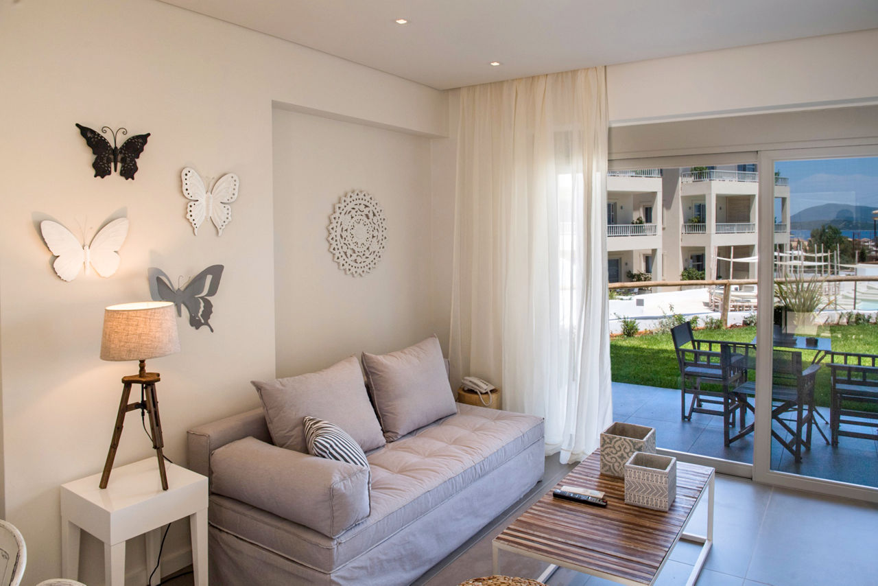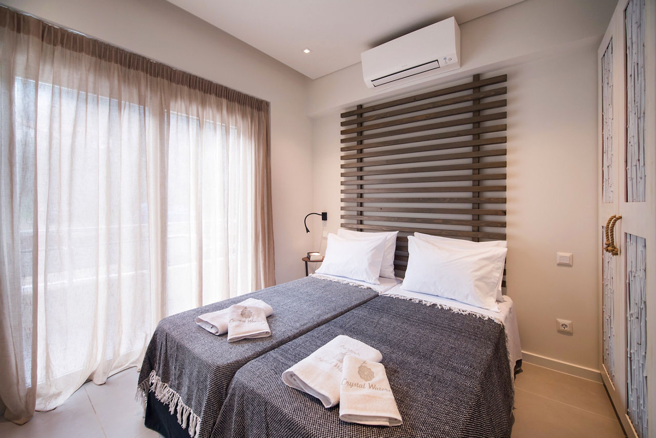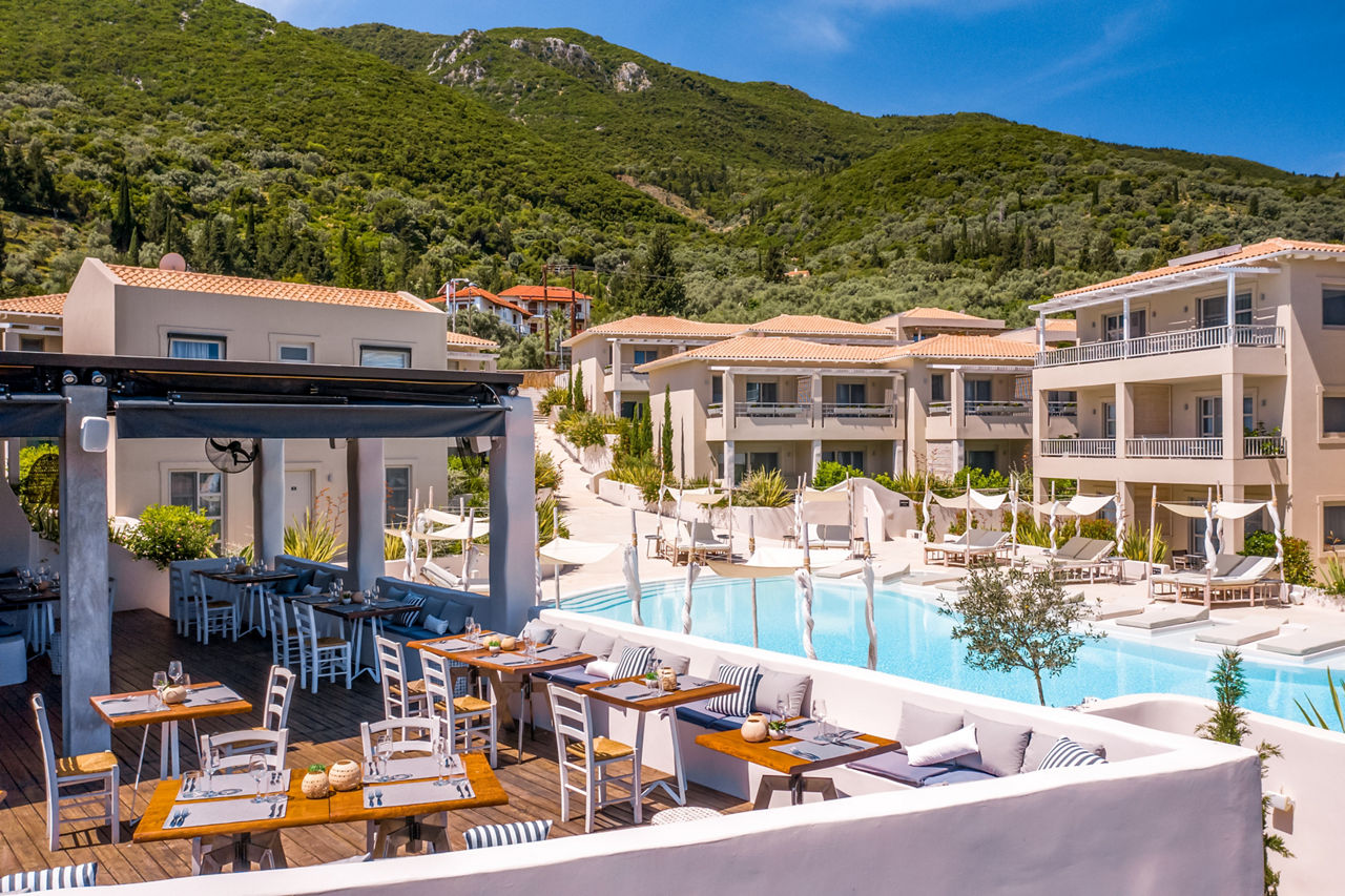 If you are looking for the perfect luxury getaway in Lefkas then Crystal Waters is the hotel to stay in. Just a short walk away from the inviting turquoise waters of the Ionian Sea, with magnificent mountain views and lush gardens you will feel instantly relaxed. Rooms are contemporary in design; neutral colours mixed with lush wood and metal fixtures making a delightful luxurious ambiance. And that’s not all, there is also an inviting pool area and beauty treatments available for some precious pampering time.