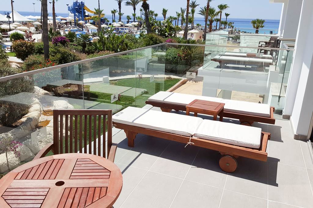 Classic rooms sleep up to 2 adults and 1 child and have bathroom containing a bath with shower attachment, air conditioning, hairdryer, flat screen television and a balcony or terrace. Classic rooms with Sea View, Superior rooms sleeping up to 3 adults or 2 adults and 2 children have the same facilities as the Classic rooms, but are larger in size and also include a small dining table and chairs with either an Inland View or a Side Sea View, Junior suites sleeping up to 3 adults and 2 children have the same facilities as Superior rooms, plus free Wi-Fi, free safety deposit box, tea and coffee making facilities, and are also larger in size and have an en-suite bathroom with a bath and shower, plus a separate walk-in shower, Queen suites have the same facilities as Junior suites but are larger in size and are located in the gardens of the hotel and Classic rooms for Sole Use are also available.