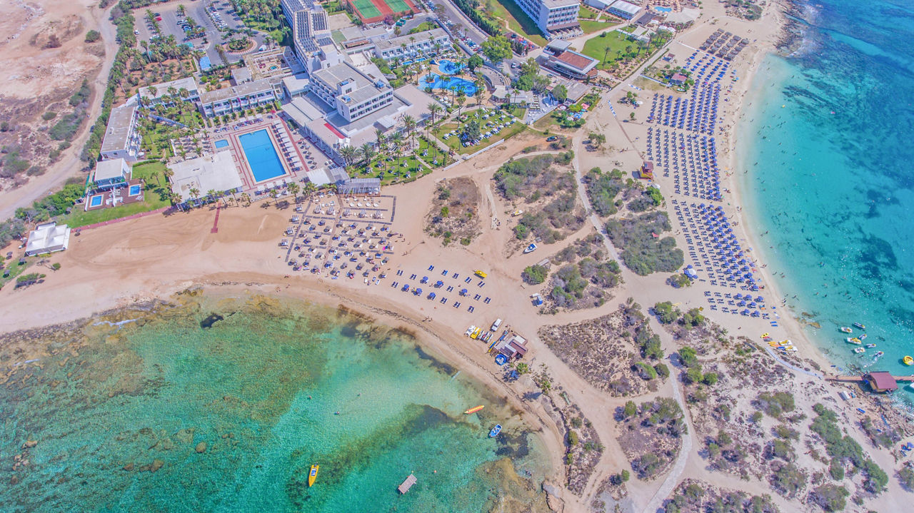 Set on the golden sands of Nissi Bay, Dome Beach Hotel is the perfect spot for a sunshine filled Cyprus getaway. With its stunning beachfront location, sparkling pools, and choice of à la carte restaurants, this stylish hotel has everything you need for a truly relaxing stay. Spend your days unwinding by the pool or beach, while the kids make the most of the fun splash area. As the sun sets, enjoy themed dinners, a refreshing drink, and the laid-back evening atmosphere. Whether you’re travelling as a family or a couple, Dome Beach Hotel combines comfort, great facilities, and an unbeatable location for your next Ayia Napa escape.