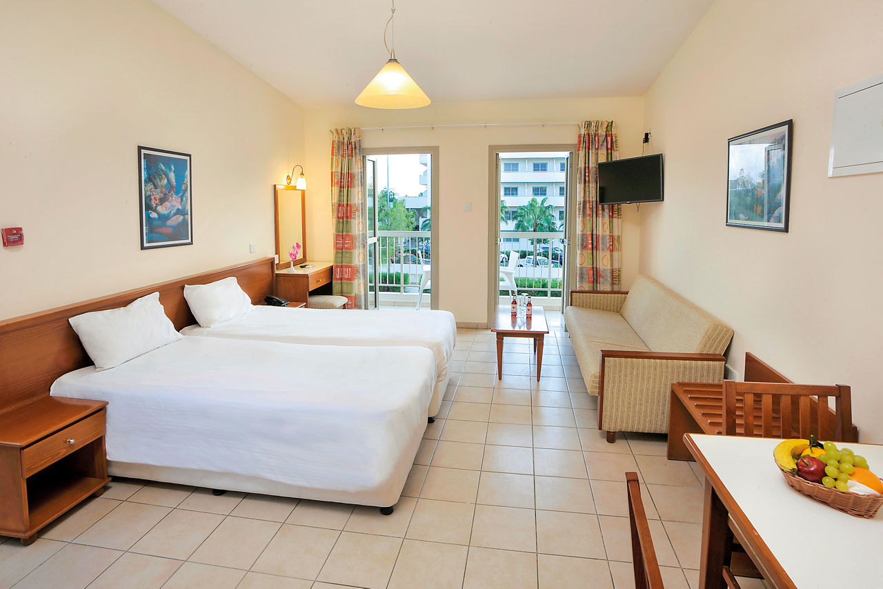 If your holiday revolves around beach days, you’re in luck – Nissiana Hotel & Bungalows is within skipping distance of the popular Nissi Beach. The hotel is great for families too – comfortable rooms fit up to four and the little ones will love the pool area. The board selection means you can go all-out with All Inclusive or choose Bed and Breakfast and see where the day takes you. There’s also an on-site gym and a sauna room to relax in afterwards, while the kids enjoy an adventure in the play area.
