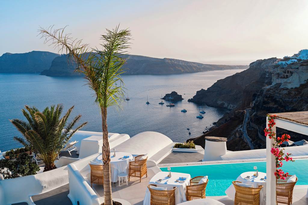 You’ll be bowled over by this traditional Cycladic hotel. Its breathtaking, bucket-list caldera views are just the beginning – Katikies Santorini is renowned for its impeccable service, intimate atmosphere and beautiful architecture too. Boutique shops and charming restaurants are within walking distance, though stay right where you are if you’re after three infinity pools. The two à la carte restaurants boast sumptuous, Greek Anatolian cuisine with a side of epic vistas. After an afternoon of Mediterranean-inspired treatments in the spa, allow yourself to be tempted by sushi and cuvées in the hotel’s Seltz Champagne Bar & Restaurant by Fleur de Miraval.
