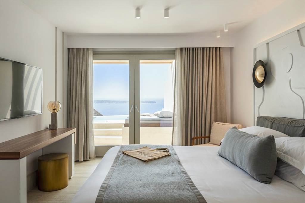 Elegant, sophisticated living is at the heart of your stay at Santo Pure Oia Suites & Villas. Located on the outskirts of Oia scenic village, overlooking the expansive Aegean Sea and the unique Santorini sunsets, the feeling of space, serenity, and pure relaxation washes over you from the moment you arrive. Separated into six sprawling neighborhoods with Mediterranean gardens centered around six pools, Santo Pure resembles a typical Santorinian village, combining traditional Cycladic architecture with contemporary lava-black and white soothing tones. The spacious suites are perfect for those who seek a tranquil holiday; with a range of lavish suites including sunset views and private pool options, the height of luxury is at your fingertips.