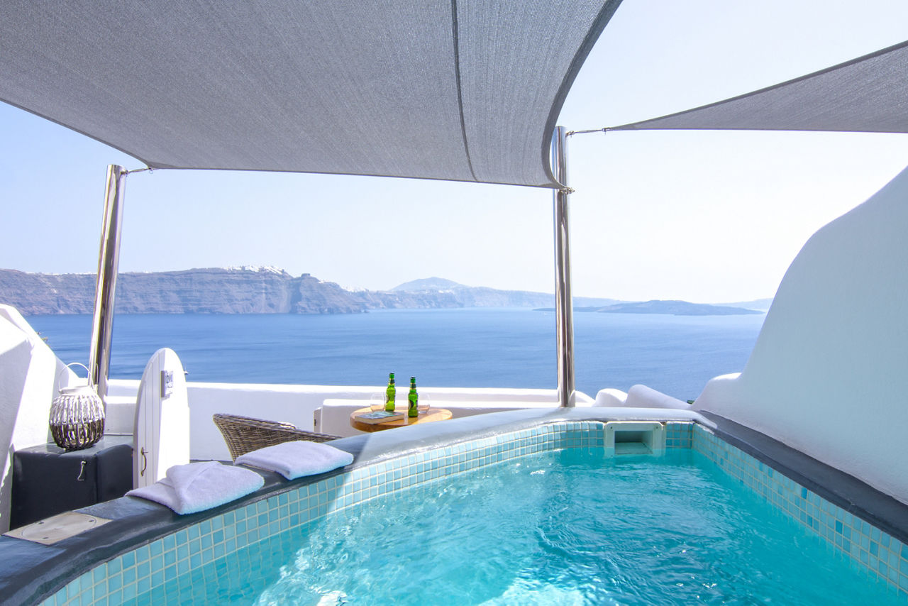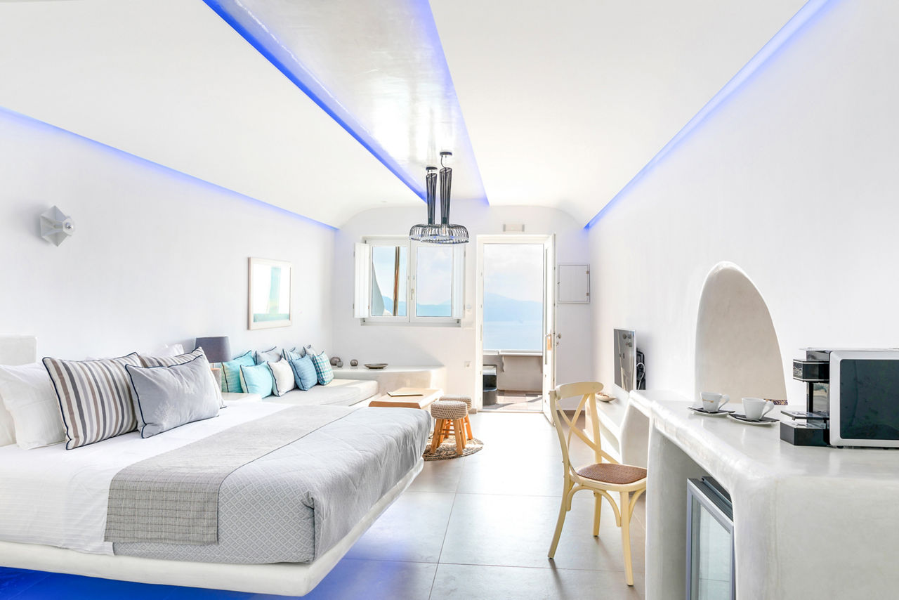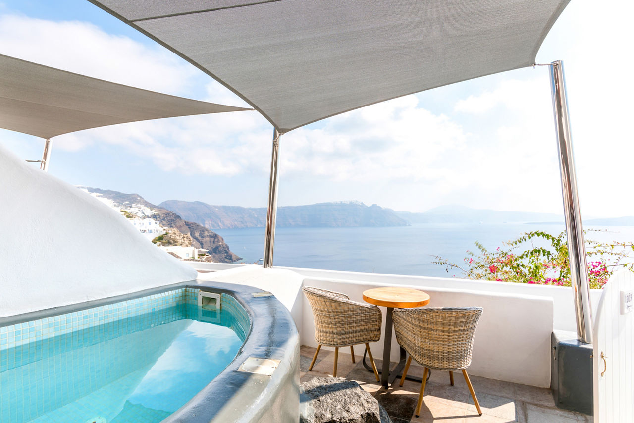Positioned in the heart of Oia’s coastal area this boutique hotel is perfect for a peaceful retreat. Unwind on your private veranda with a delightful breakfast whilst absorbing the sunrise over the breath-taking Caldera. This hotel is embraced by the traditional blue dome buildings and gourmet restaurants to suit every palate.
