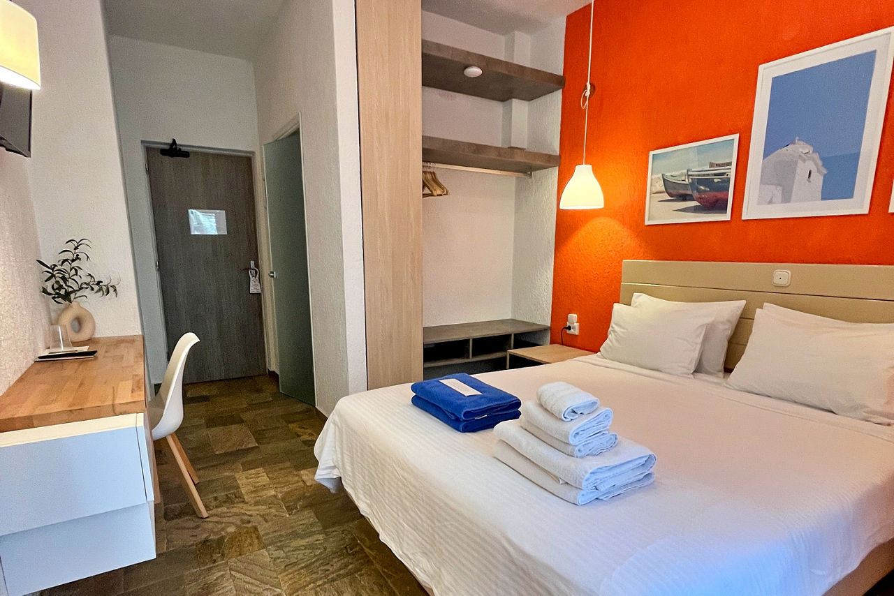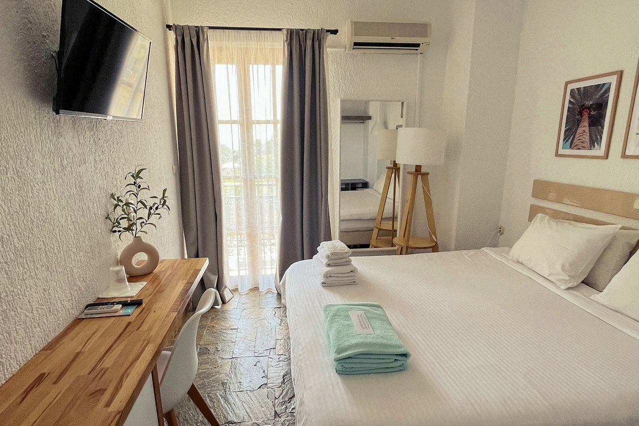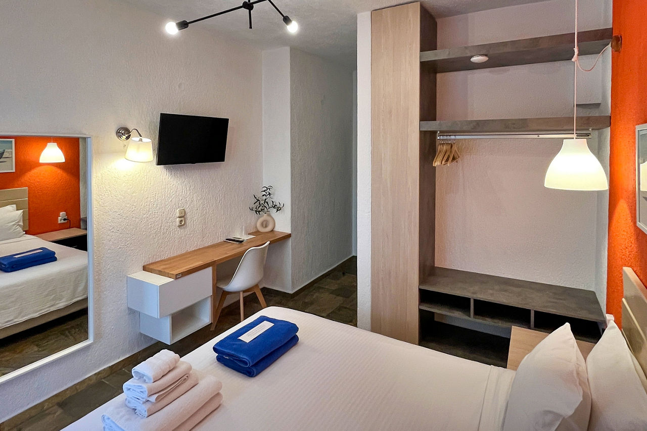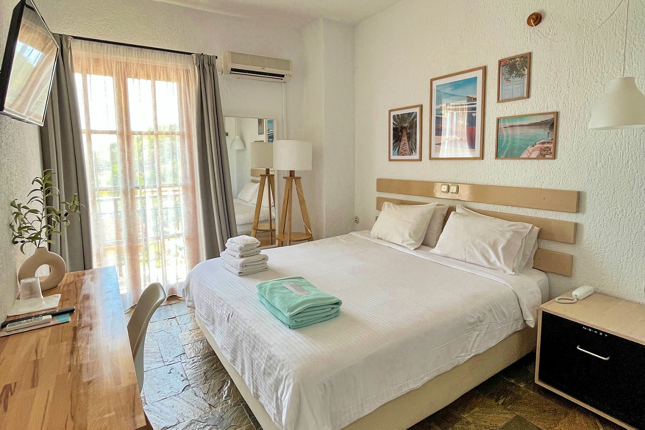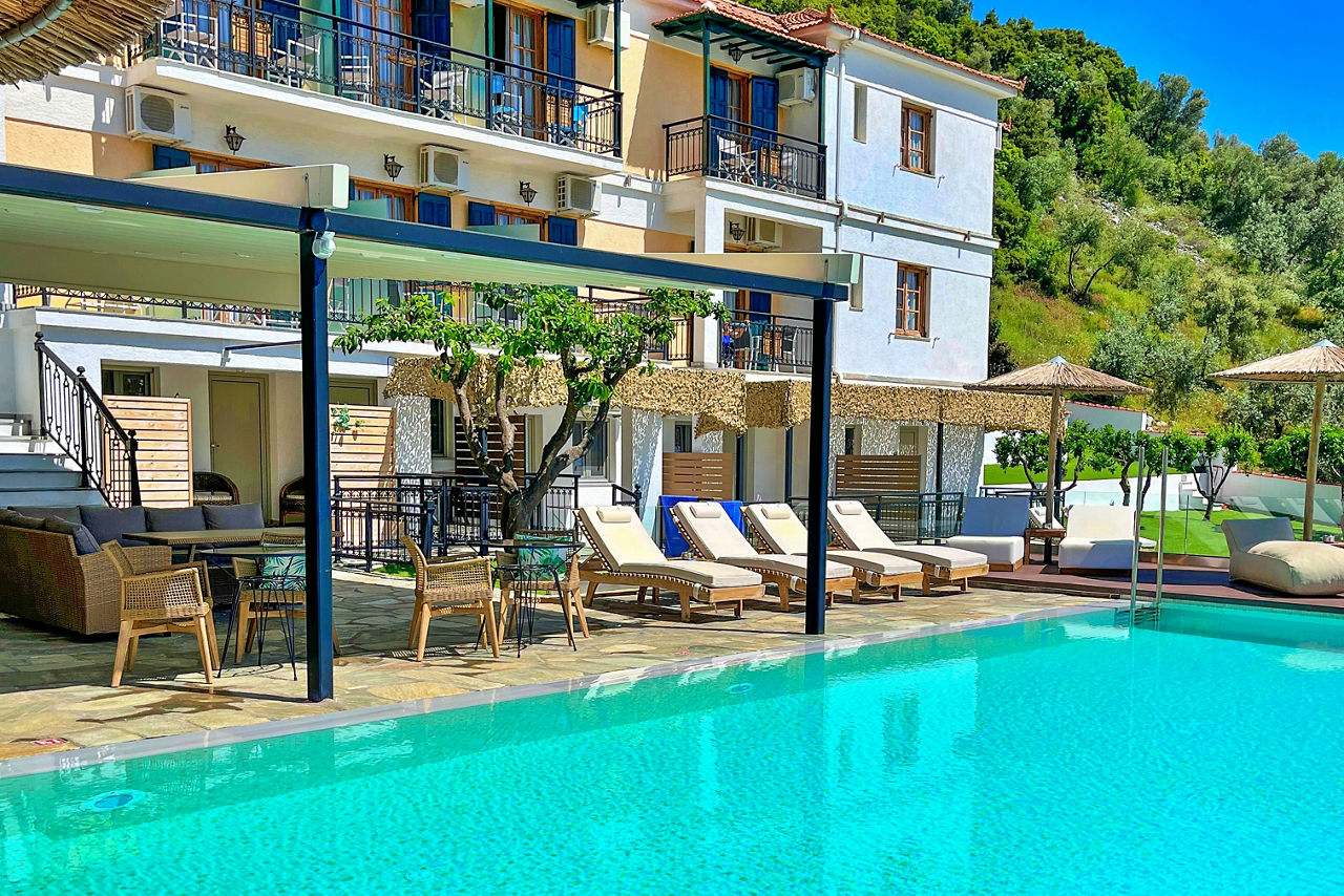 A striking infinity pool offering views of the lush green countryside and the sea await at the Panormos Beach Hotel. Set in well-maintained gardens, the rooms are decorated in neutral, fresh tones and offer a relaxing retreat. Panormos resort centre with its beautiful shingle beach and handful of quaint tavernas, is a short walk away.