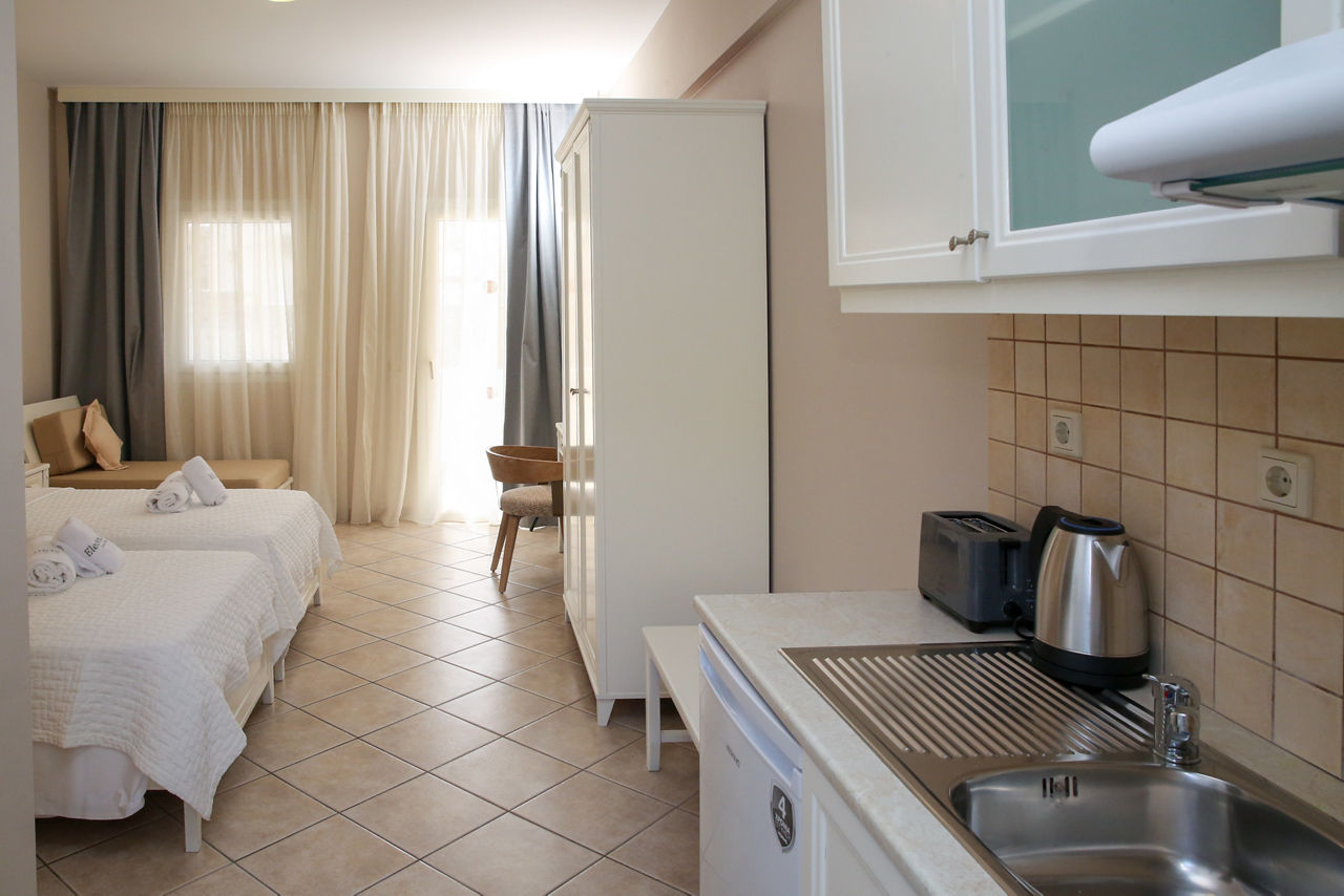 Tucked away in a quiet spot, in walking distance to the Parga’s town centre, you’ll find Eleonas Villas. There’s a calm feel throughout this lovely hotel, from the peaceful pool area to the bright, comfortable rooms. By day, soak up the sun poolside, or relax on the balcony or terrace of your room. By night, take the 10-minute stroll in to town to try some authentic Greek fare at one of the water-lined restaurants. If you love to do your own thing from a good-quality base, Eleonas Villas is just the ticket!