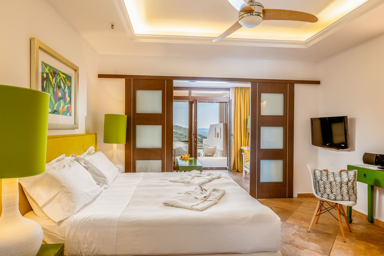 Located just outside Parga Town, amidst the lush green olive groves sits the elegant Salvator Hotel Villas & Spa. You’ll feel at home from the moment you arrive with the tranquil atmosphere and attentive staff taking care of your needs. Spend the day unwinding by the pool which commands breathtaking views, followed by a visit to the hotel's poolside à la carte restaurant to savour divine cuisine, washed down with a specially selected tipple from the hotel's very own wine cellar. For a change of scenery, make the most of the hotels shuttle bus which will whizz you to Parga in no time. Retreat back to your colourful yet tastefully decorated room which comes equipped with the essentials to ensure a comfortable stay. With a contemporary feel crossed with its classic Greek setting, you'll be sure to enjoy a relaxing break at the Salvator Hotel Villas & Spa.