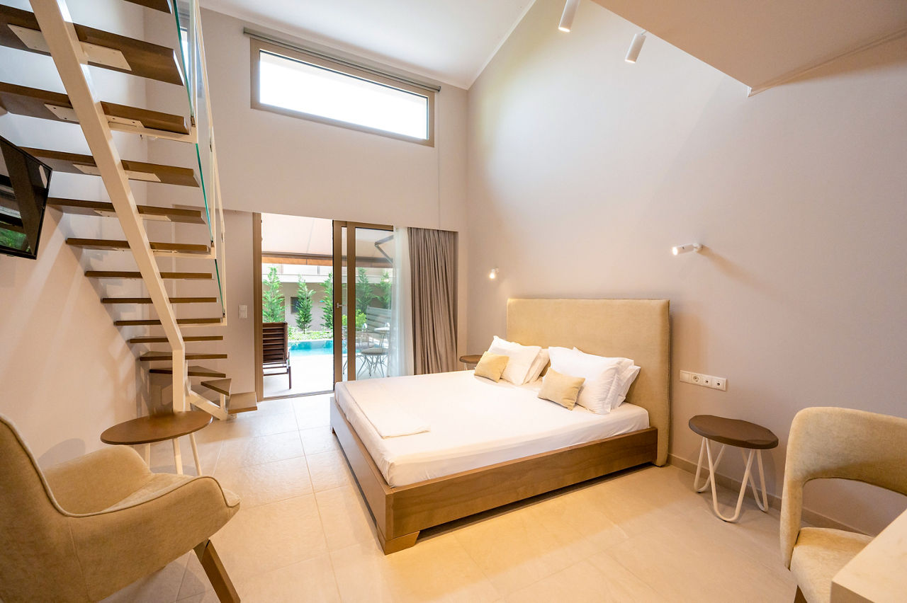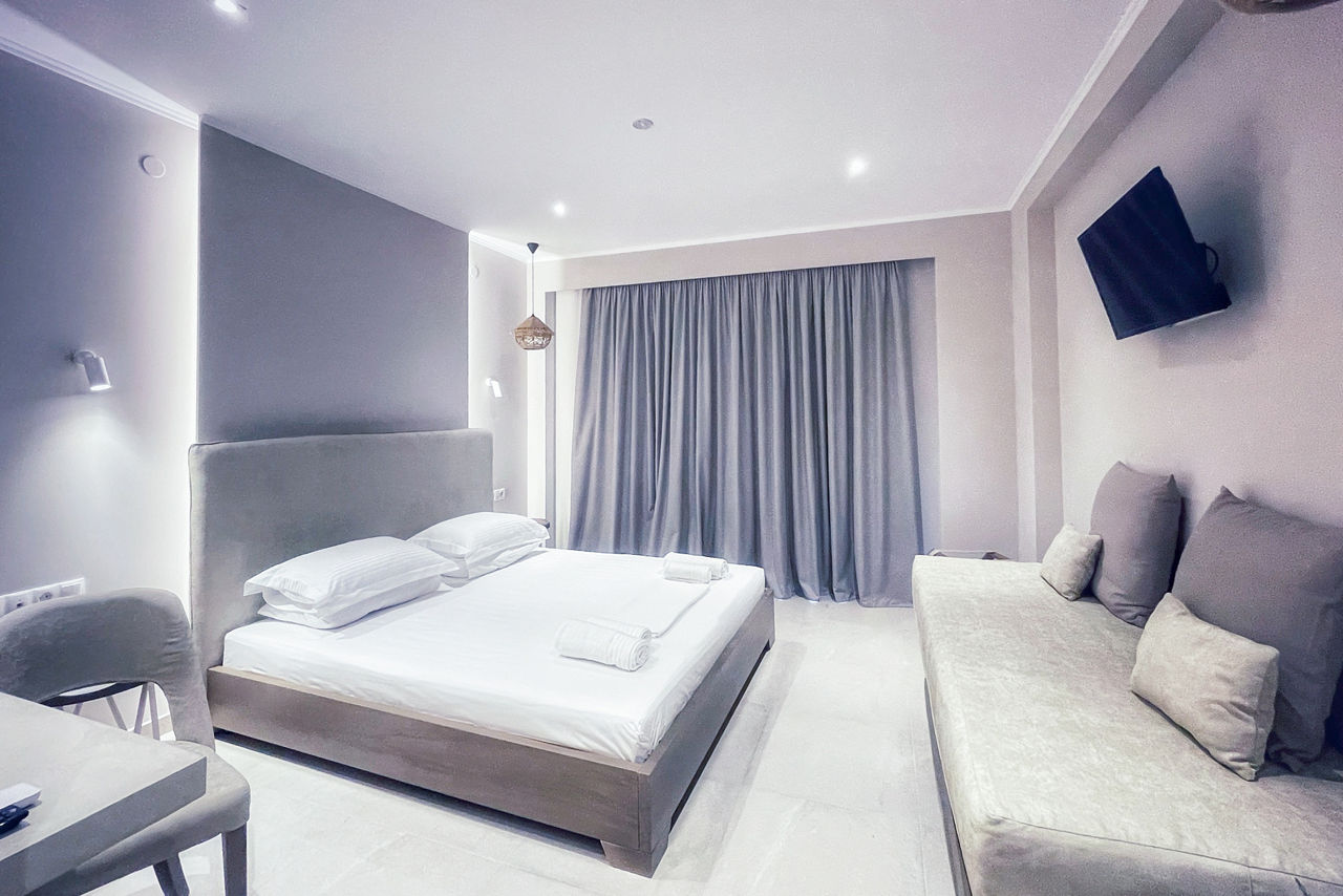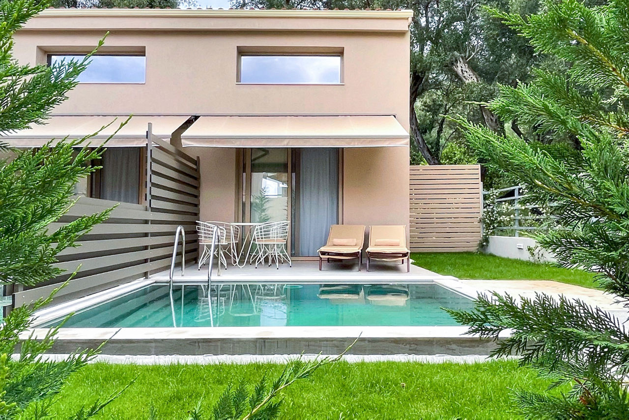 Scarabeo Hotel & Villas brings sleek minimalist living to the stunning shores of Parga town. Centred around a modern free-form pool; rooms here are modern with neutral tones and come with all the touches to ensure a comfortable stay, you could even upgrade to a room with a private pool for the ultimate luxurious treat! A short stroll will take you to Valtos beach and you'll find plenty more bars, restaurants and shops to explore at Parga town further along.