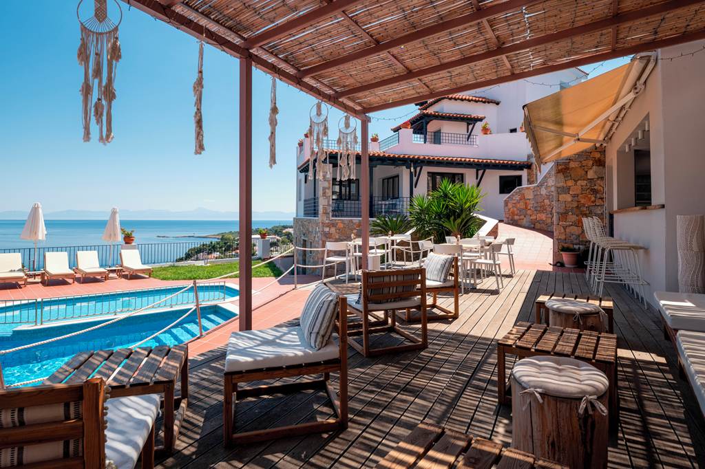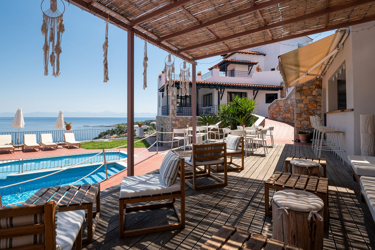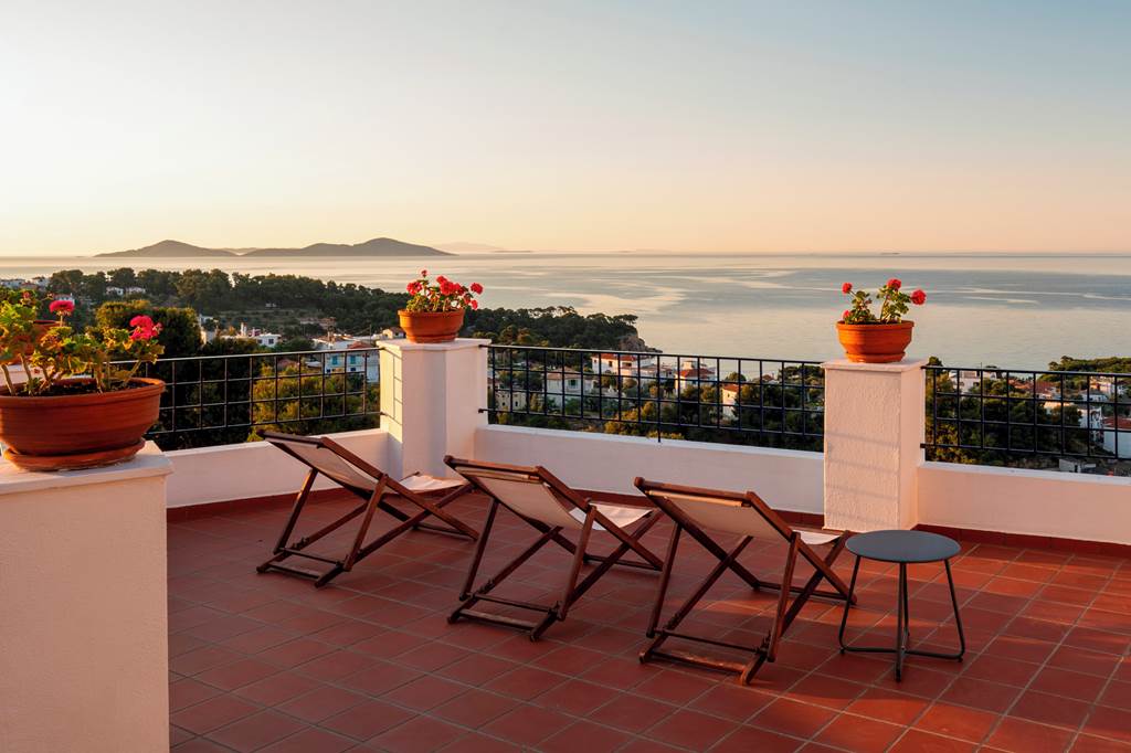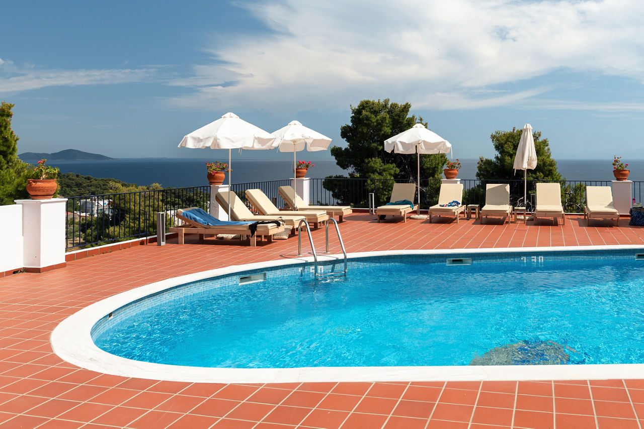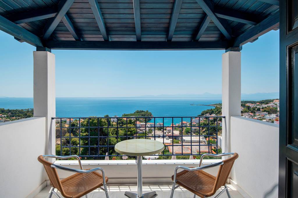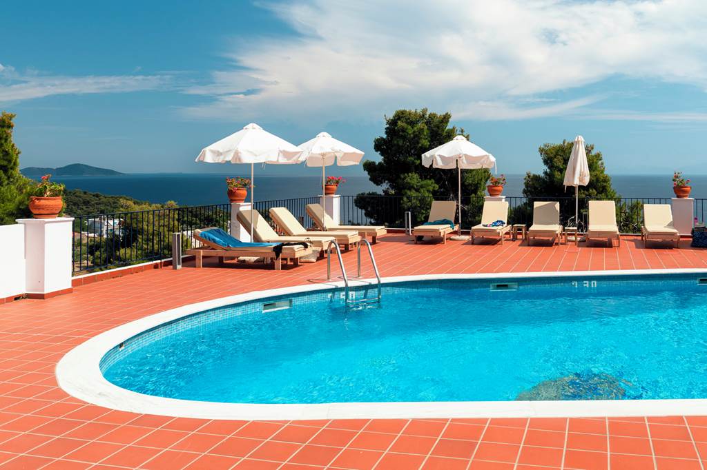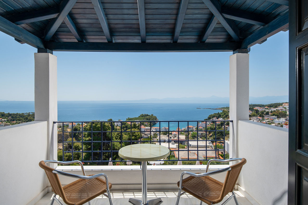 The charming and authentic Atrium of Alonissos truly makes the most of its hillside location. Boasting glorious views of the glistening sea from the pool area, it is the perfect spot to relax and unwind while enjoying a refreshing drink from the hotel’s pool bar. For those who want to explore more of what Patitiri has to offer, the nearest shops, marina and beach are approximately a ten minutes walk away. Rooms here are well-equipped and all come with sea views so you can enjoy the scenery without leaving your balcony if you want to slow down the pace!