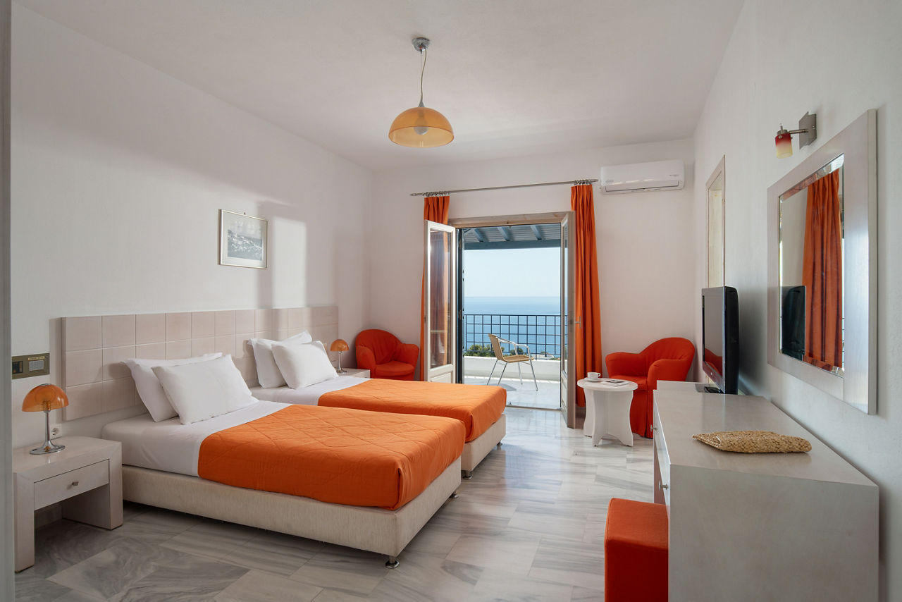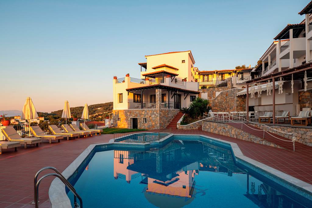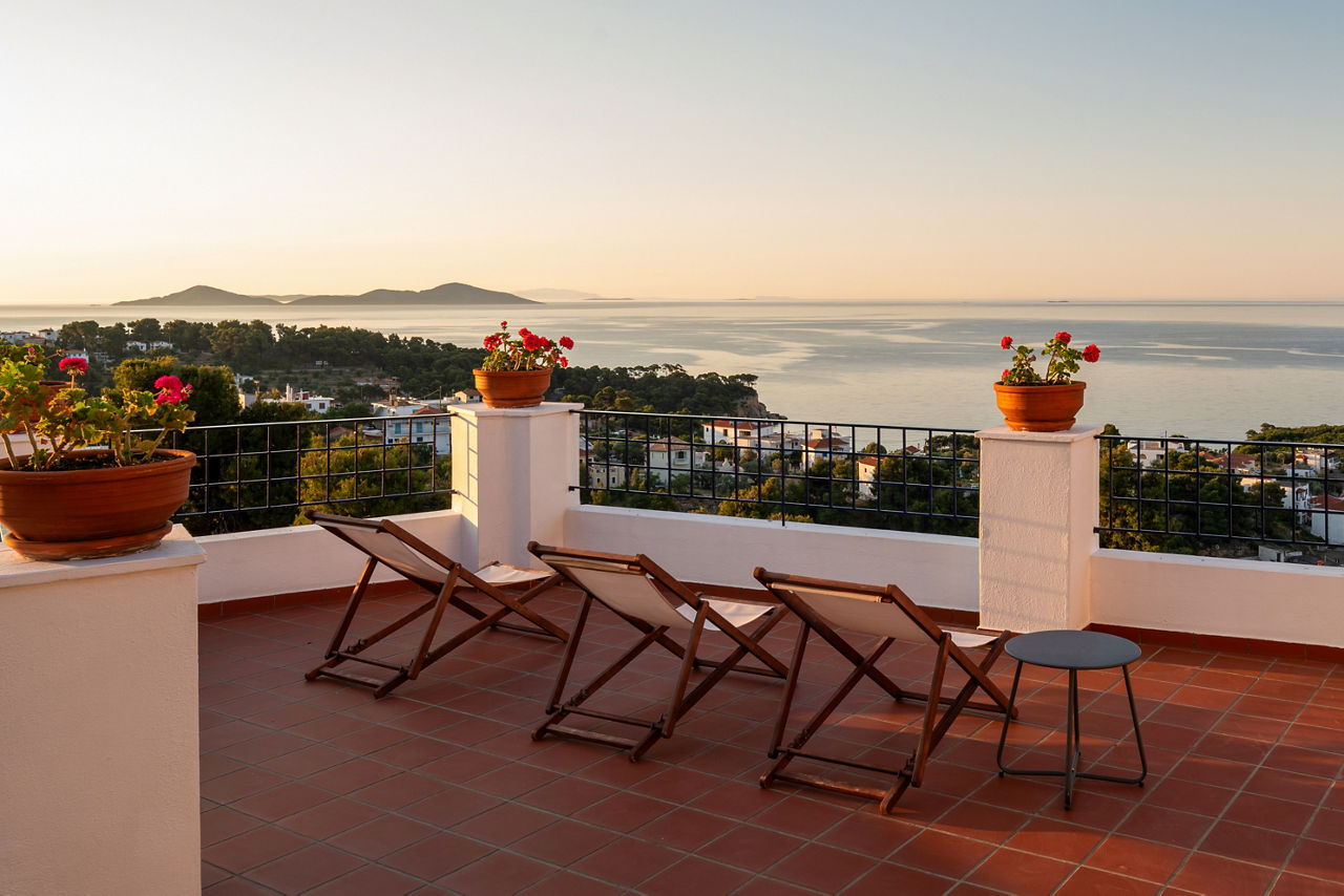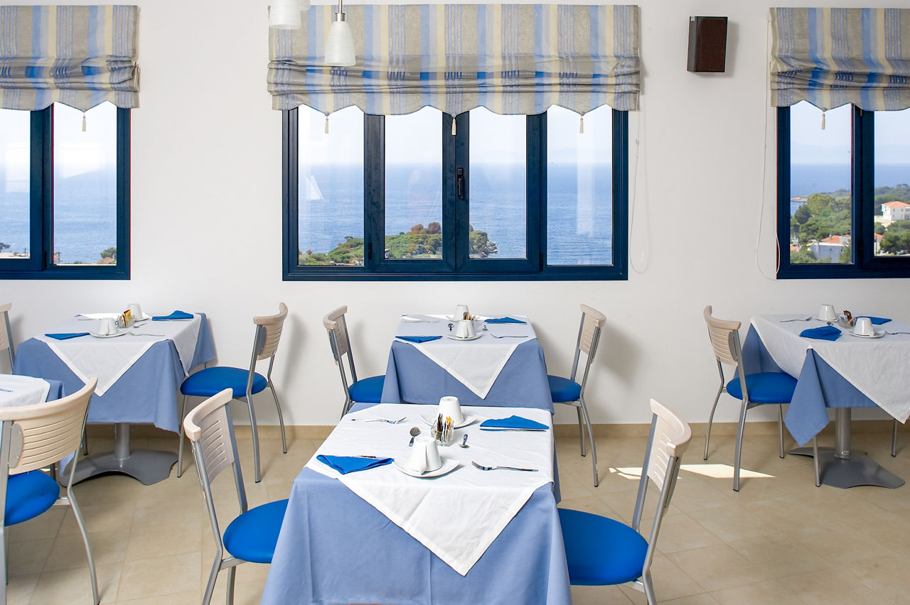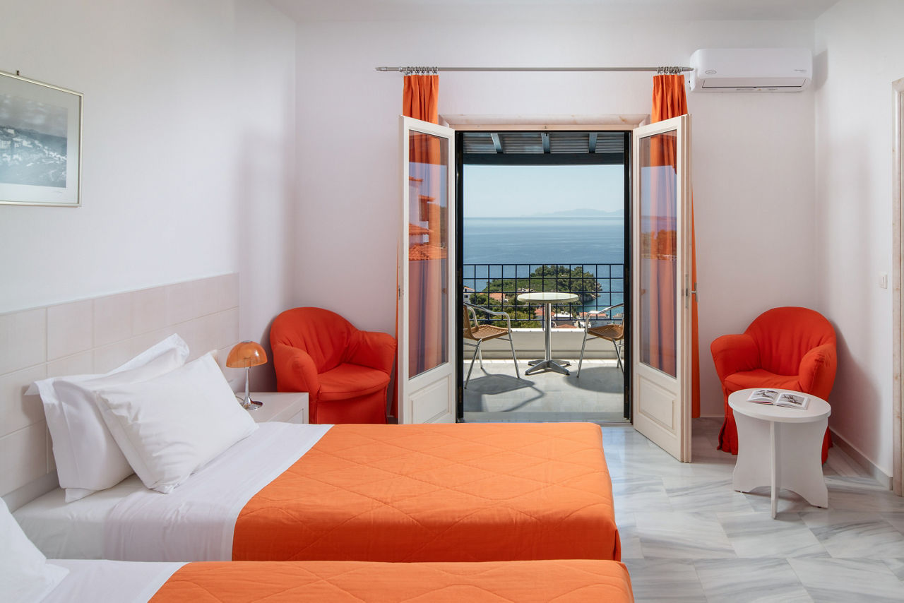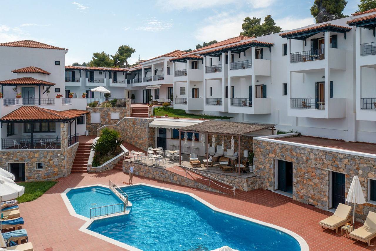 The charming and authentic Atrium of Alonissos truly makes the most of its hillside location. Boasting glorious views of the glistening sea from the pool area, it is the perfect spot to relax and unwind while enjoying a refreshing drink from the hotel’s pool bar. For those who want to explore more of what Patitiri has to offer, the nearest shops, marina and beach are approximately a ten minutes walk away. Rooms here are well-equipped and all come with sea views so you can enjoy the scenery without leaving your balcony if you want to slow down the pace!