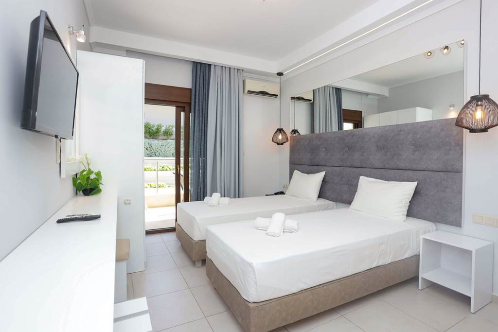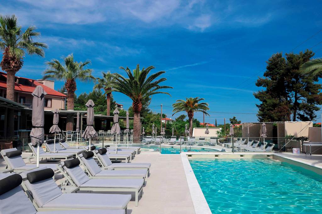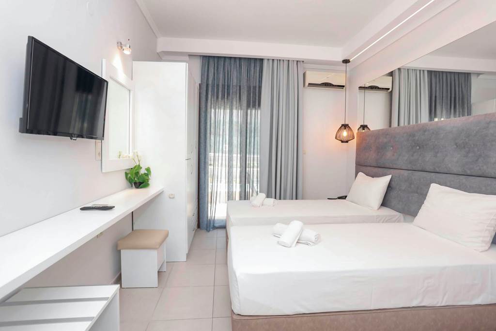 Anna Maria Paradise is a vibrant and modern hotel set in peaceful surroundings, just a short walk from the beach and within easy reach of Pefkohori. Surrounded by gardens and a large pool area lined with palm trees, it now features two brand new pools and a refurbished main pool area for 2025. With spacious, colourful room types and a pool bar, guests can enjoy sun-soaked days on the terrace before heading into town to enjoy its welcoming bars and restaurants.