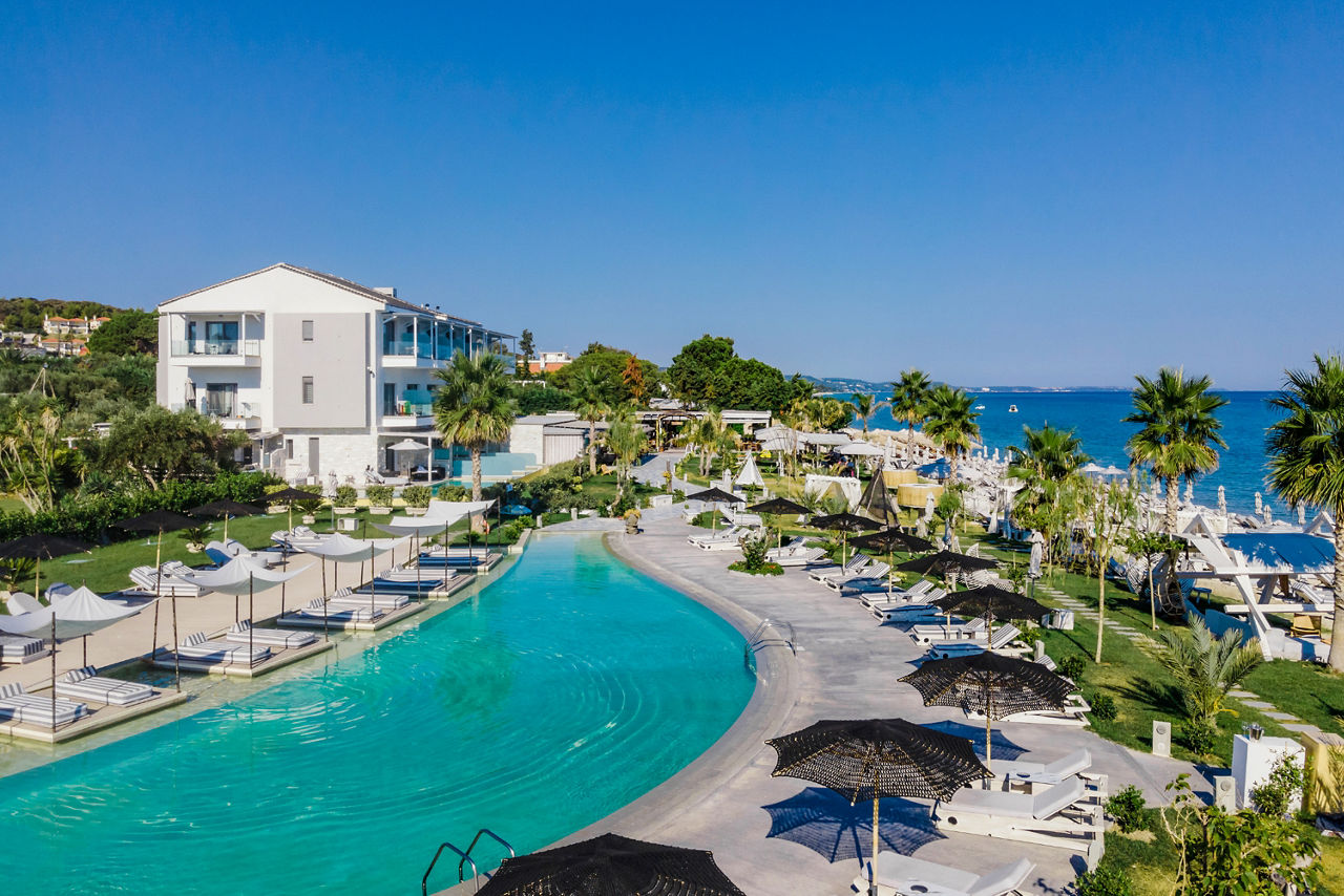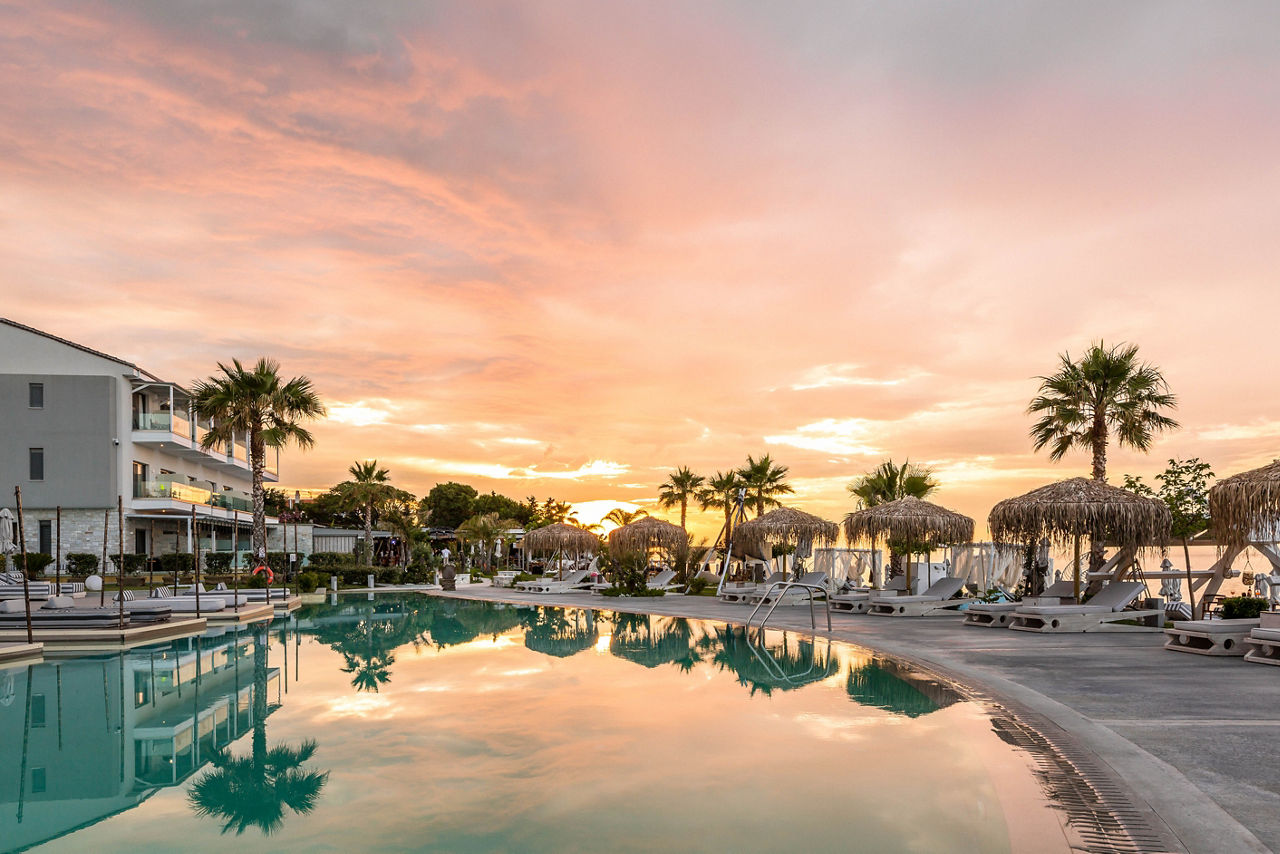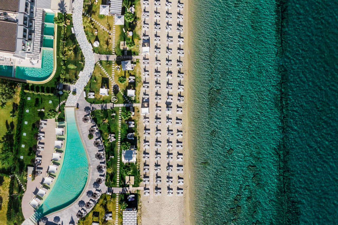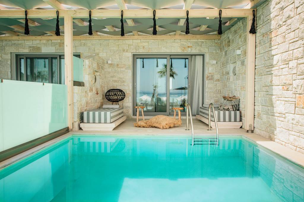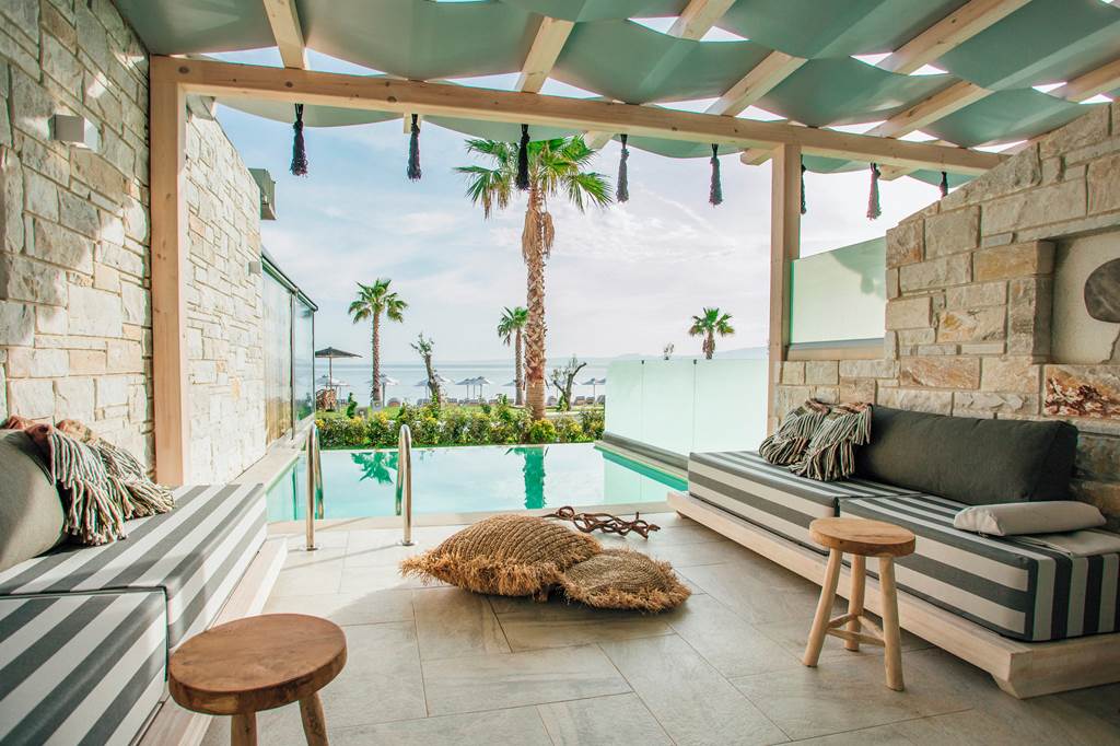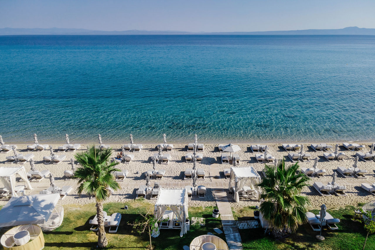 Discover the ultimate beachfront escape at Blue Carpet Luxury Suites, where boho-chic design meets unparalleled relaxation. Choose a room with a stunning sea view for breath-taking vistas of the crystal-clear waters or indulge in a suite with a private pool for an extra touch of luxury. Delight in authentic Greek and Mediterranean flavours at Canela restaurant, where locally sourced ingredients come together to create delightful dishes. Just a 20-minute walk or a quick taxi ride away, the charming resort of Pefkohori awaits, offering a range of local culture, restaurants, bars and tavernas.