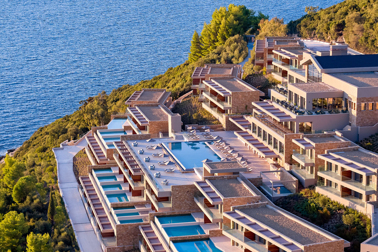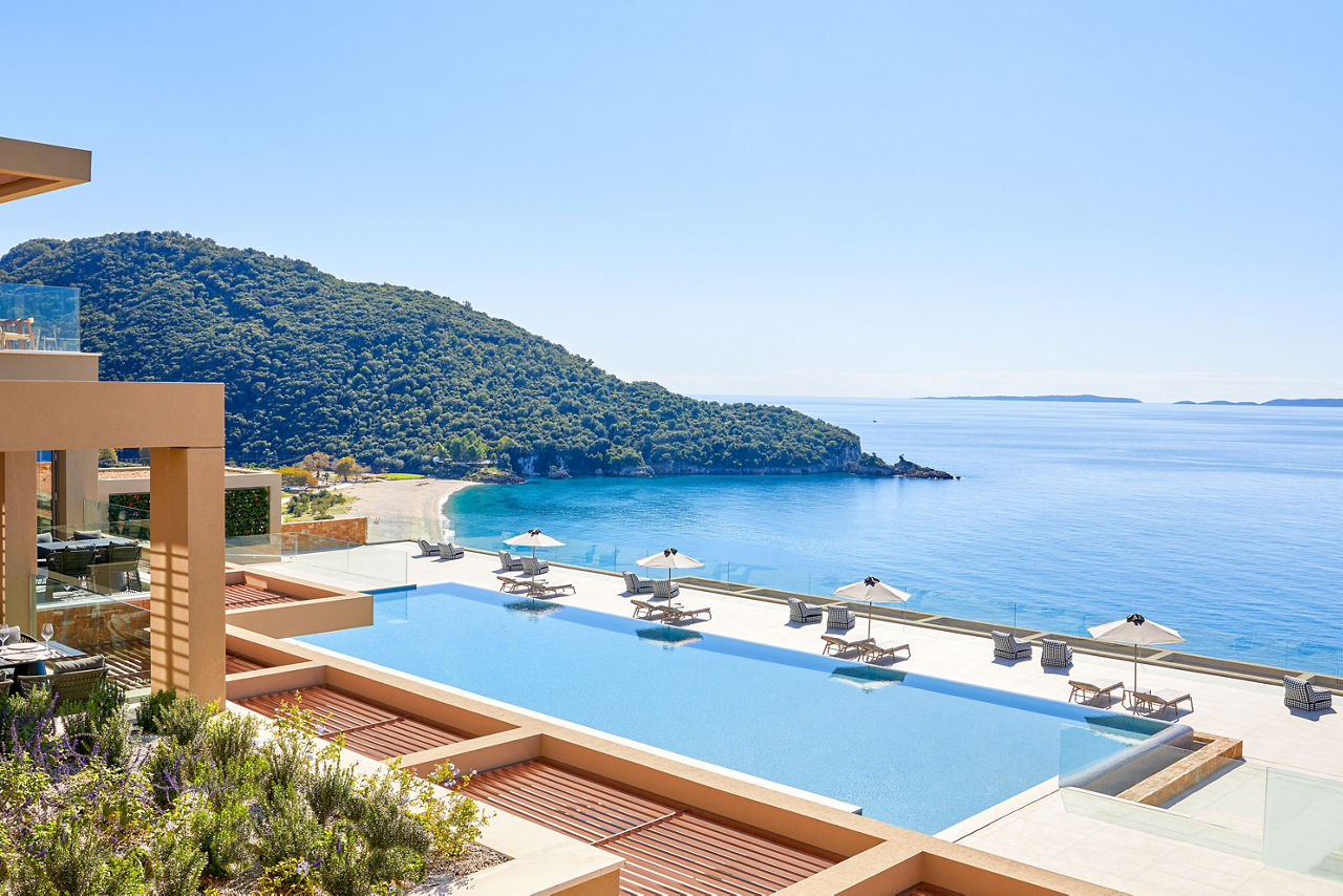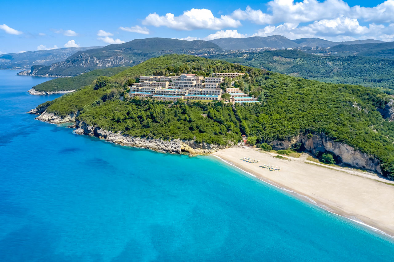 Perched on a hilltop, overlooking the unspoilt natural beauty of Karavostasi Beach, this hotel delivers spectacular sweeping scenes. Flit between two outdoor pools, delight in four international restaurants and the youngsters can let off steam in the all-singing, all-dancing children’s club. Take the funicular and in just 50m, you’ll be on soft sands. When you’re not lounging on the beach, there are three chic bars perfect for sunset sipping. All Inclusive Plus means even the fussiest eaters are catered for. You can unwind in the spa or visit nearby Sivota too, if adventure strikes. It’s an excellent-value getaway for families with children aged up to 14.