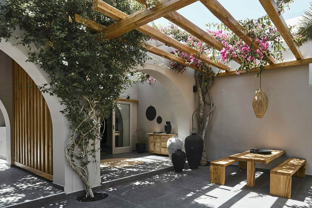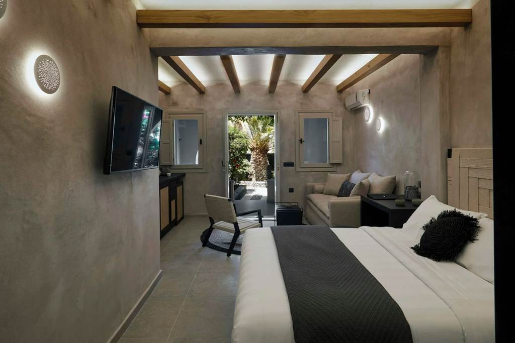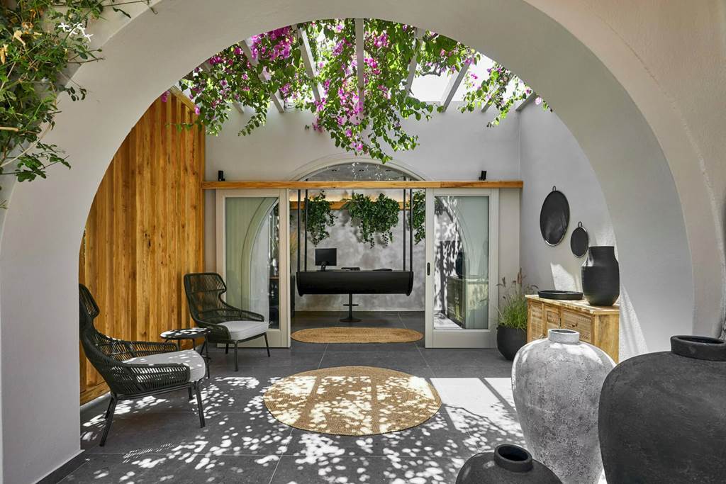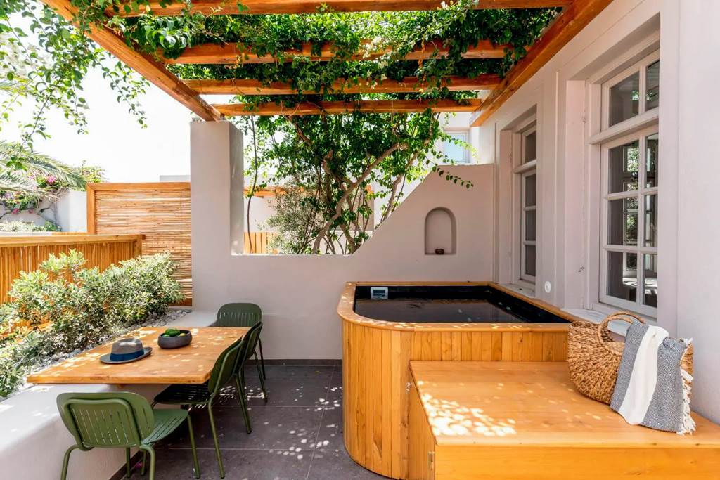 When looking for a dreamy hotel for your holiday in Santorini, Marillia Village Apartments & Suites is just what you need for a stay that truly stands out. The hotel is centred around its roomy pool area, which has a bar perched alongside it to take care of the refreshments. The rooms are spacious and radiate contemporary style, and you can even upgrade to a room with a private plunge pool or whirlpool, for the ultimate luxurious treat! The beach is less than a 5-minute walk away, and the beachfront restaurants of Perivolos are around 10 minutes further along, as well as a bus stop making this an ideal choice for those who want to explore this bucket-list destination!