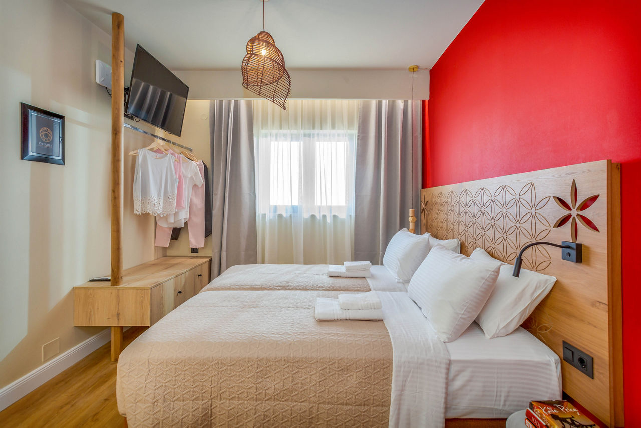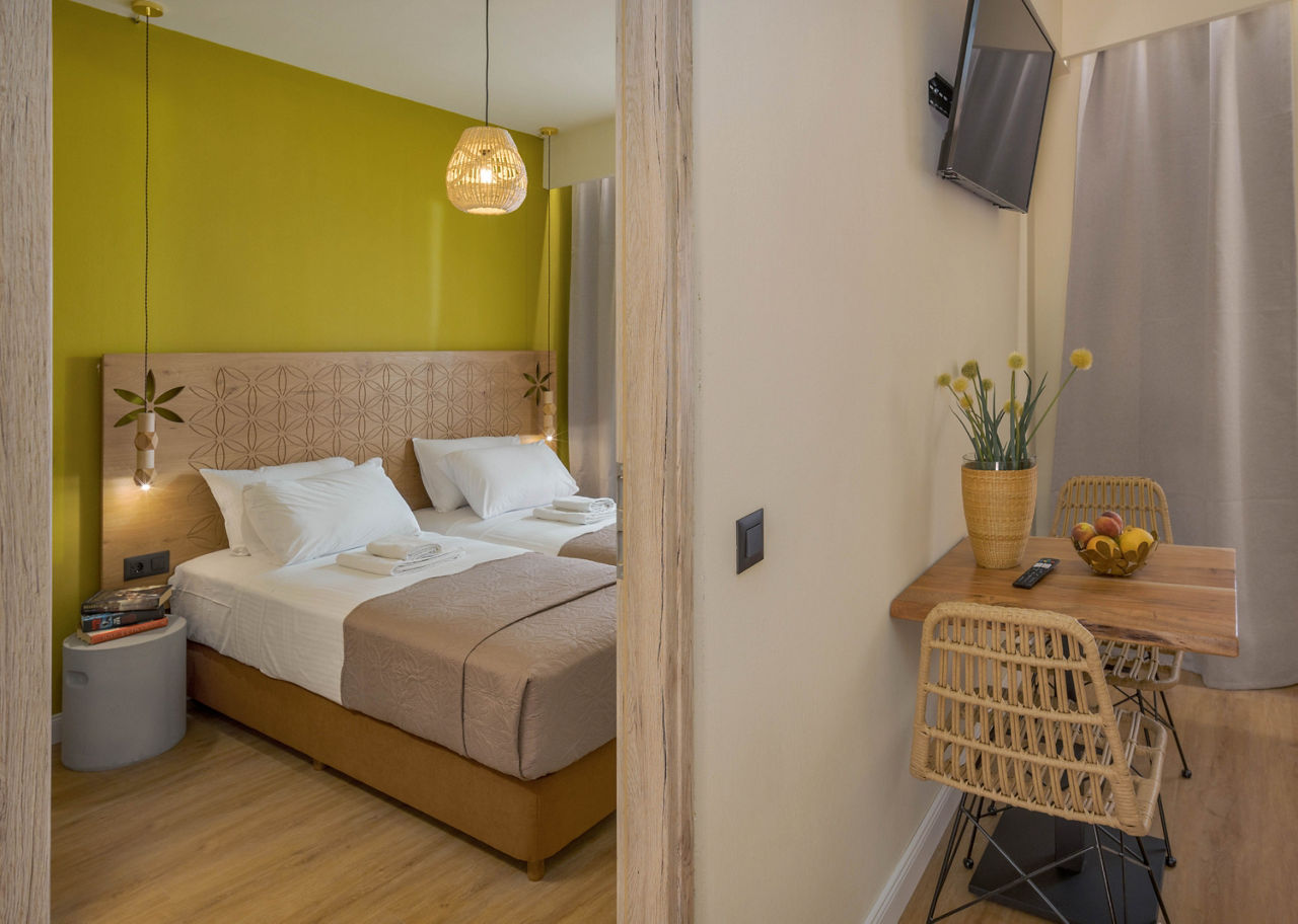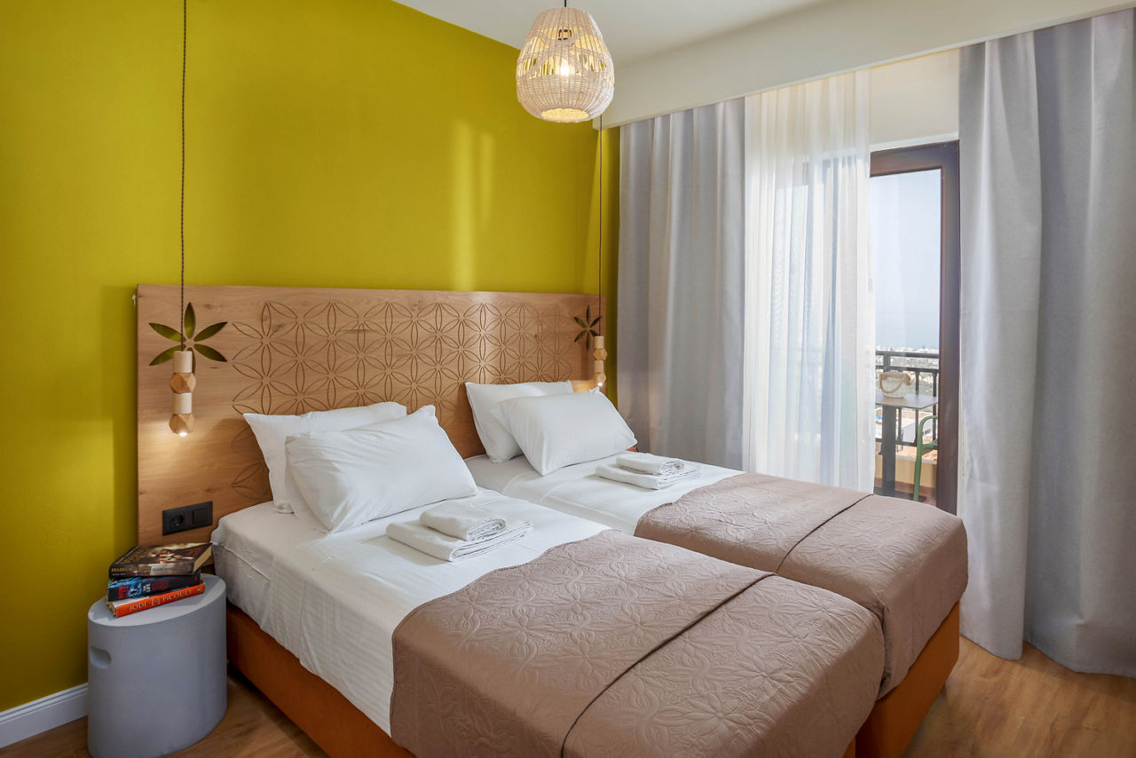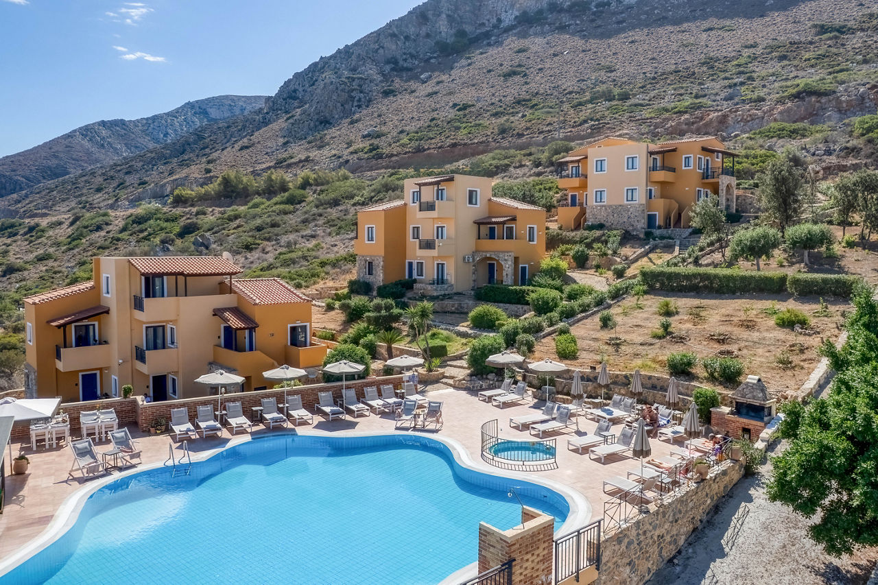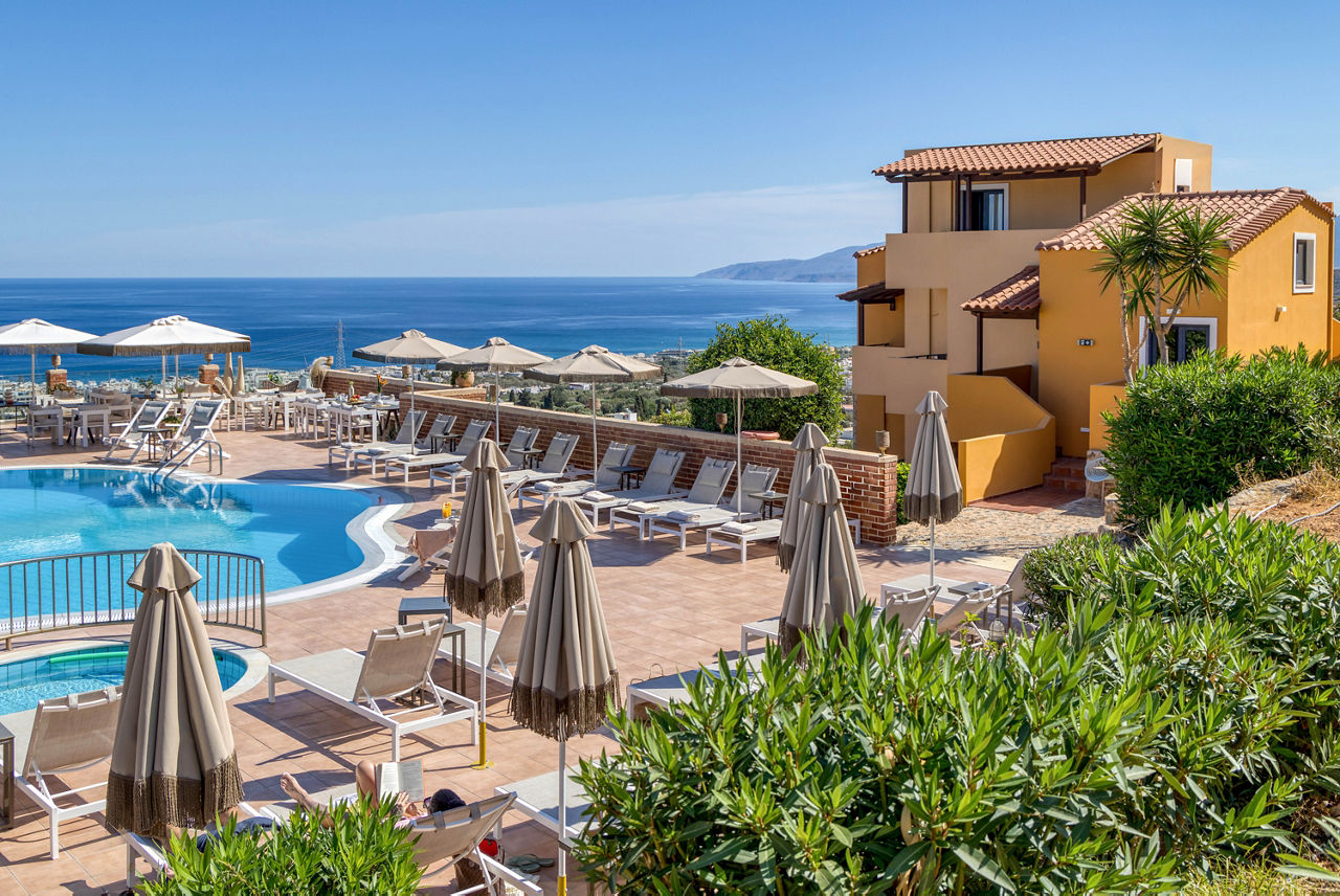 Just on the outskirts of Piskopiano, the small and friendly Driades Apartments sits on the hillside overlooking the coast and popular resort of Hersonissos. enjoy the scenic views, local tavernas nearby and relaxing pool area during the day. For something a bit more lively, take a taxi to Hersonissos and visit the many shops, bars and restaurants. With colourful, cosy rooms large enough for the family, its easy to see why the resort is so popular.