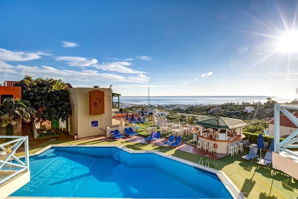 Designed to replicate a Cretan village, Piskopiano Village is perched on a hillside and offers sweeping panoramic views across the countryside to the resort of Hersonissos and the Mediterranean Sea. With traditional tavernas and shops nearby, these apartments are ideal for those wanting to sample an authentic slice of Greek life. It’s no wonder the Piskopiano Village is popular with repeat guests, thanks to the friendly and welcoming atmosphere and the great value for money accommodation.
