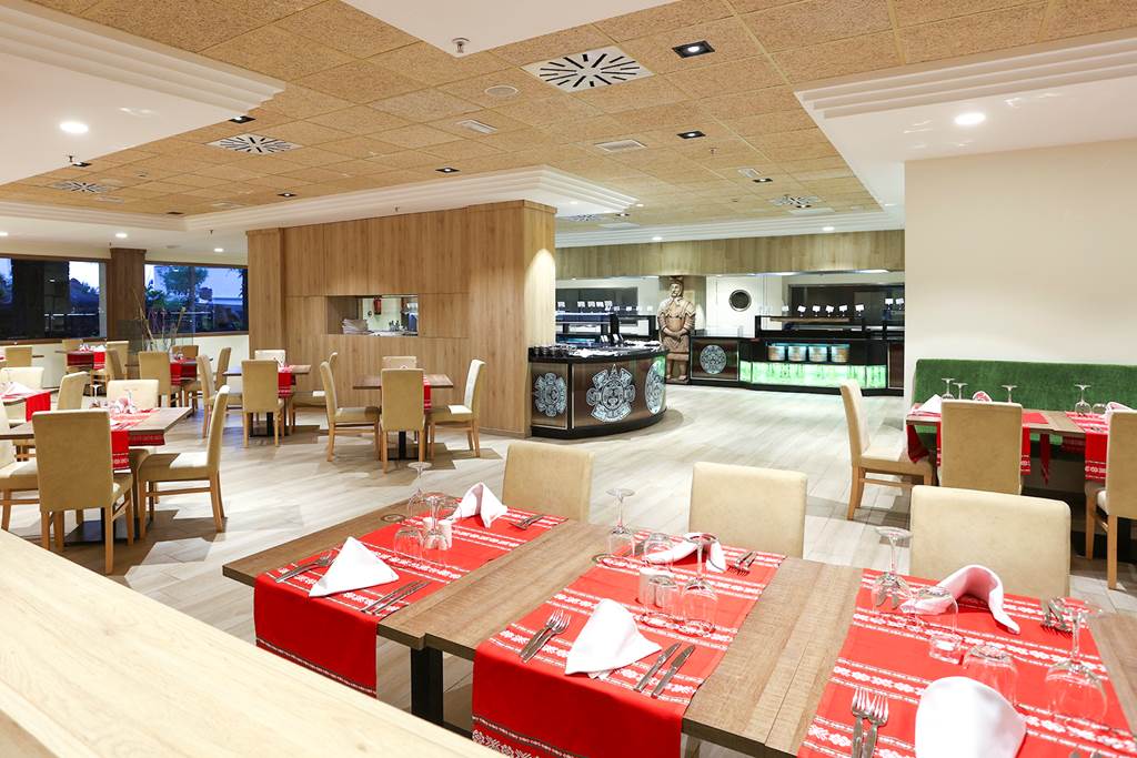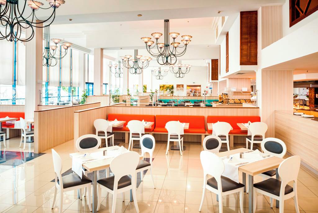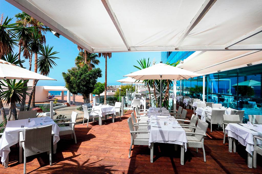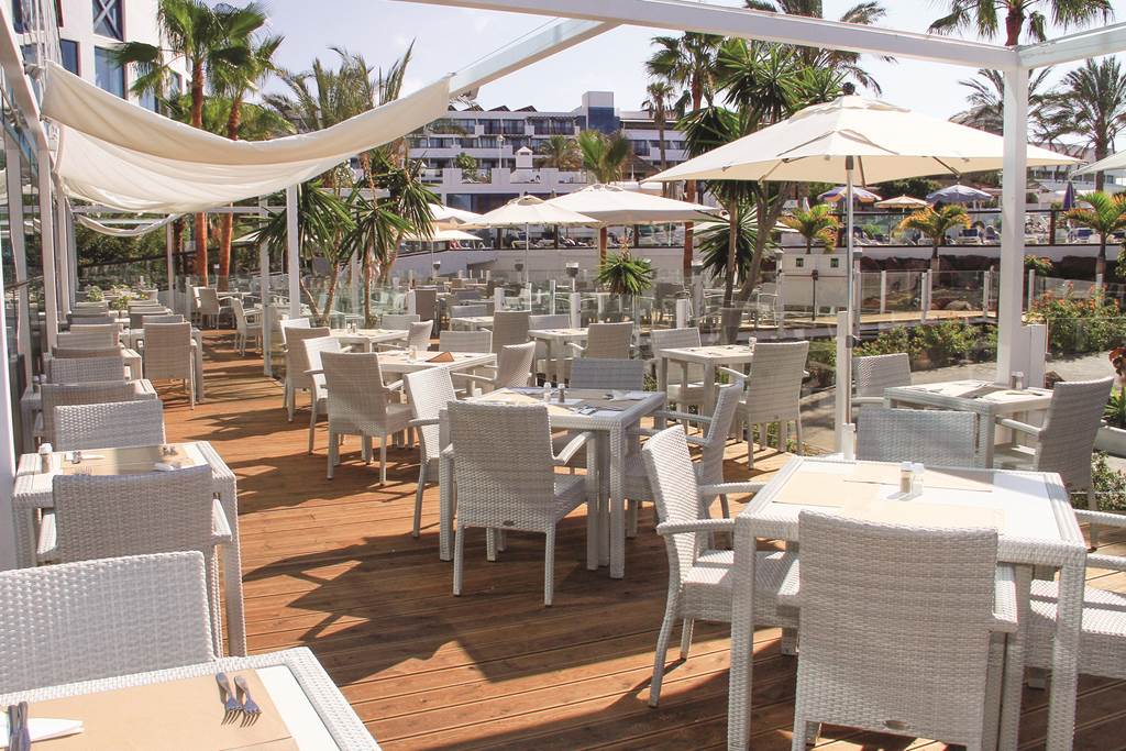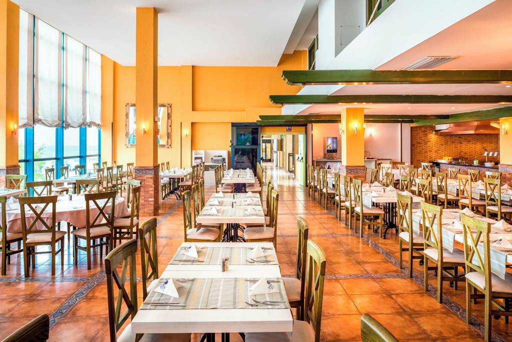 Main Restaurant with Open Air Terrace. Buffet. Serves breakfast, lunch and dinner with show cooking. Highchairs and microwaves available. Please note that the hotel requests that beach wear is not worn.