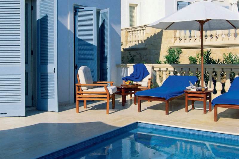 An opulent Mediterranean village-style hotel on a sheltered hillside, this Cypriot sanctuary presents all the charms of first-rate hospitality, alongside an array of astonishing amenities. Plunge into the two outdoor pools, select the stunning suite or room that suits you, then stir your senses with everything from pottery classes to private wine tastings. Between Roman columns and sun-speckled courtyards, the spa beckons with its 18 treatment rooms, yoga deck and sauna. Post-pamper time is best spent revelling in the sunset scenes then delighting in fusion fare as piano keys tinkle and harp strings are plucked. Expect a haven of all things chic here.