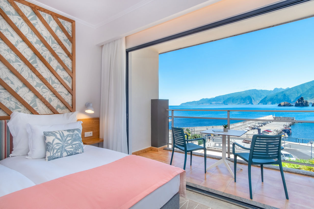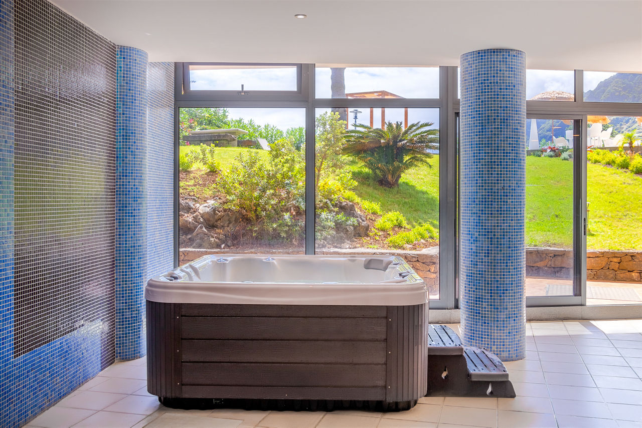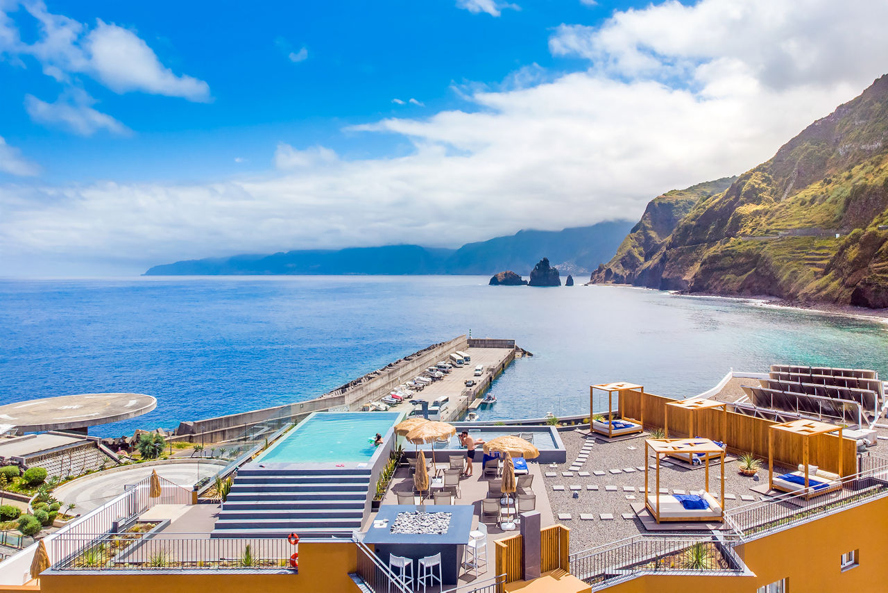 Welcome to Aqua Natura Bay, a picturesque plot where spectacular views come as standard. The hotel’s nestled close to the natural pools of Porto Moniz, so refreshing dips are guaranteed here. A relaxing sauna, whirlpool and Turkish bath? Check those off the list too! You’ll have the twinkling Atlantic on one side, and lush, tree-clad mountains on the other, so you won’t be short of backdrops for those all-important holiday snaps. Exploring UNESCO-stamped Laurissilva Forest couldn’t be easier either – it’s right on your doorstep! So if you’ve got hikers in tow, or simply love to get out and about, this spot’s got you covered.