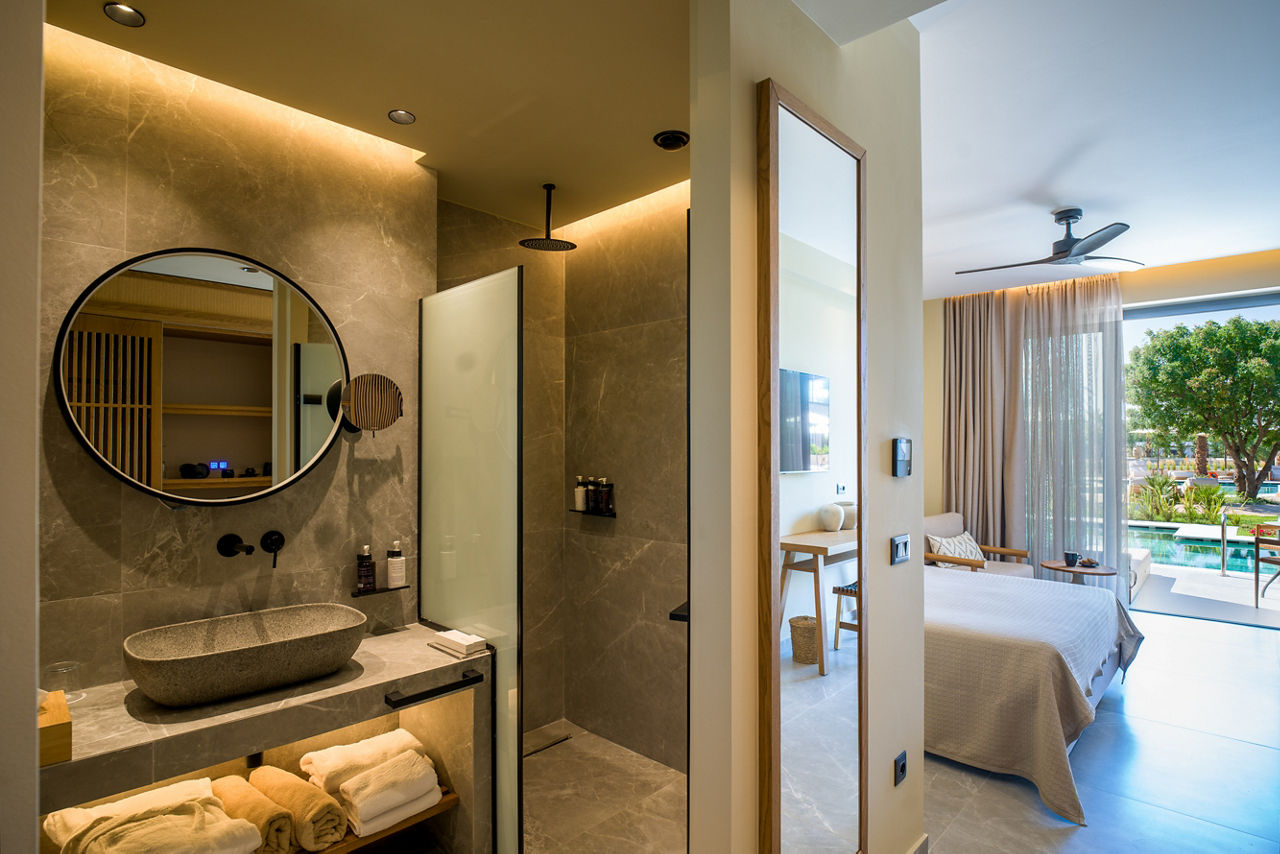 Portes Theros is a stunning property, offering the ultimate adults only escape and with the secluded beach just steps away, you’ll find the perfect spot to unwind and create unforgettable memories. Why not opt for a swim up room to elevate your stay and indulge in the fabulous All Inclusive Plus package on offer? There are a fantastic range of leisure and wellness facilities available for your choosing, a spa treatment is always a good idea!