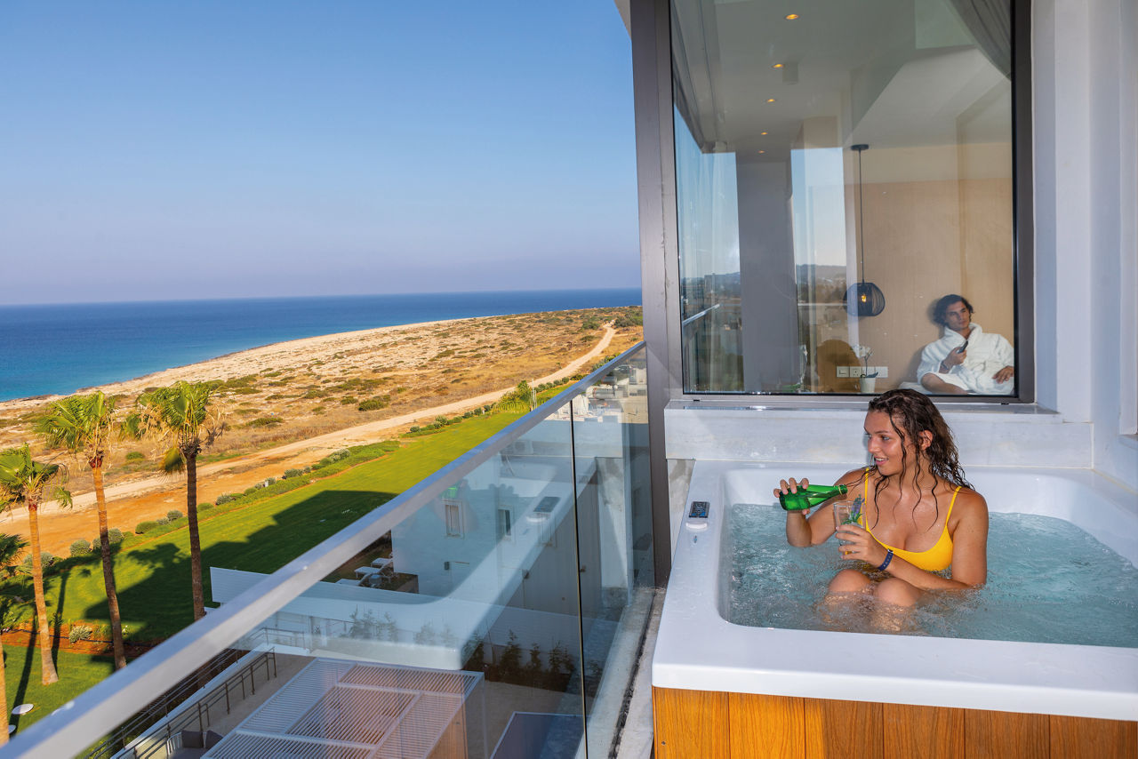 Two words: live DJs. If you’re not already halfway to the airport by now, then how does an on-site spa, sunny pool scene and dreamy seafront postcode grab you? We thought as much. Did someone say ‘terrace gin bar’? This Cypriot stunner’s got it sussed.