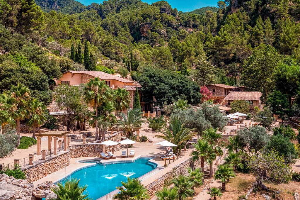 Nestled remotely within the UNESCO-protected Tramuntana Mountains, this intimate finca (farmhouse) offers an elegant escape into nature’s embrace. A scenic drive leads to sun-drenched sepia stonework, lush greenery and tranquil waterways. Designed for wellness, expect a soothing spa, outdoor pool and gym. Wood-clad rooms and suites – some with private terraces – echo the surrounding landscape. Relish healthy Mediterranean fare that’s come from garden to table and often served al fresco beneath starry skies. From yoga classes and horse riding to guided walking and cycling, every moment promotes enjoyment. Offering refined simplicity and a tranquil atmosphere, this countryside hideaway is a world apart from the island’s busier resorts.
