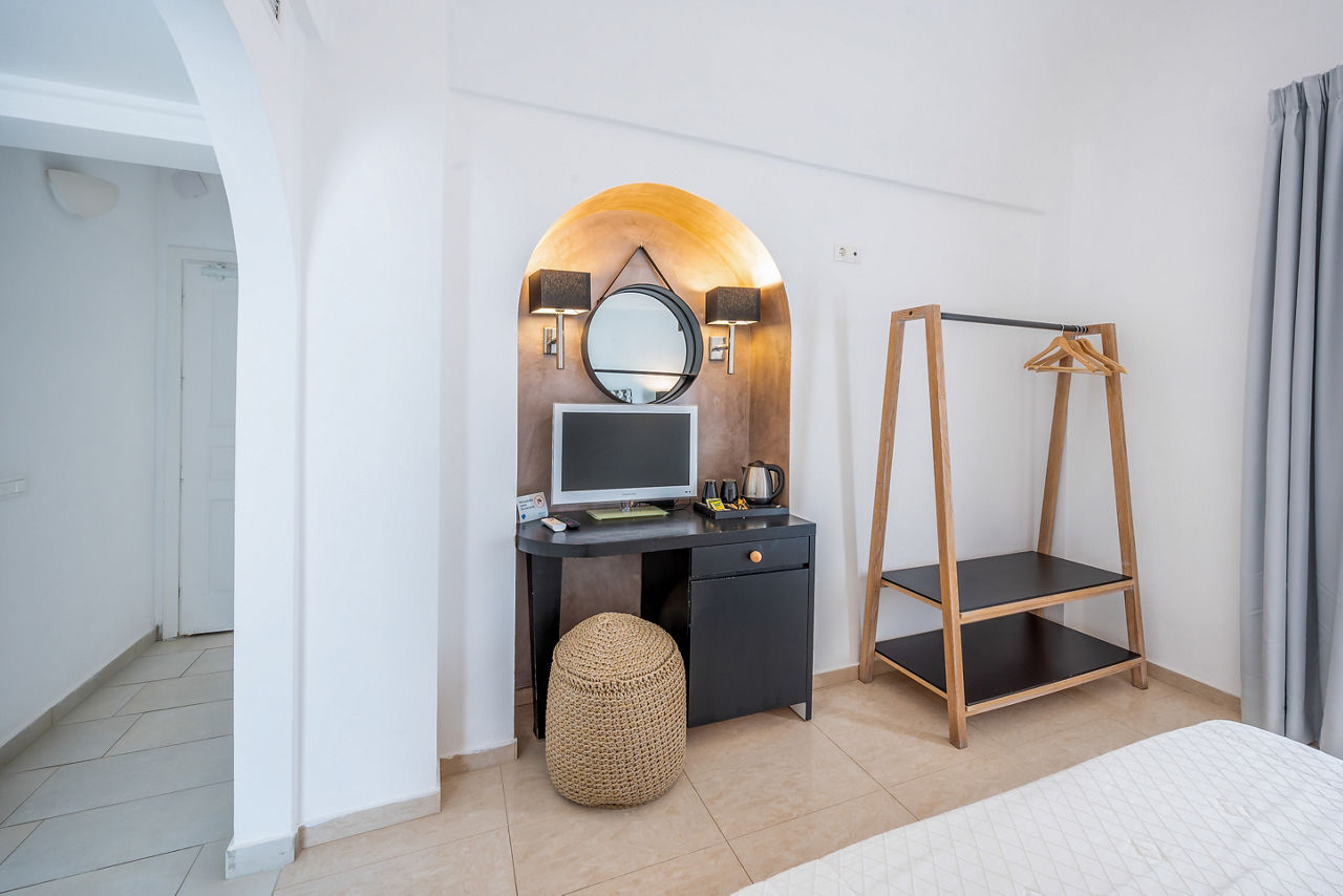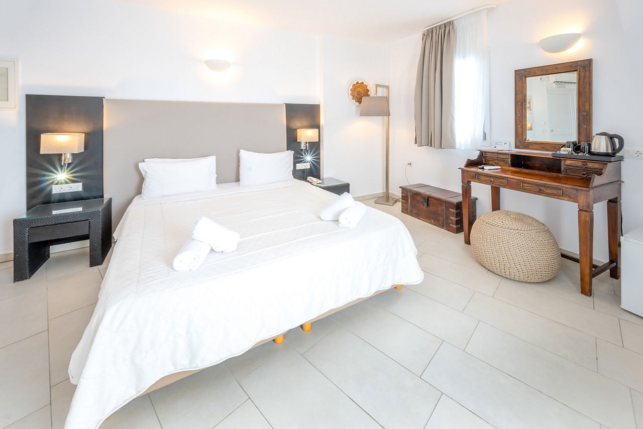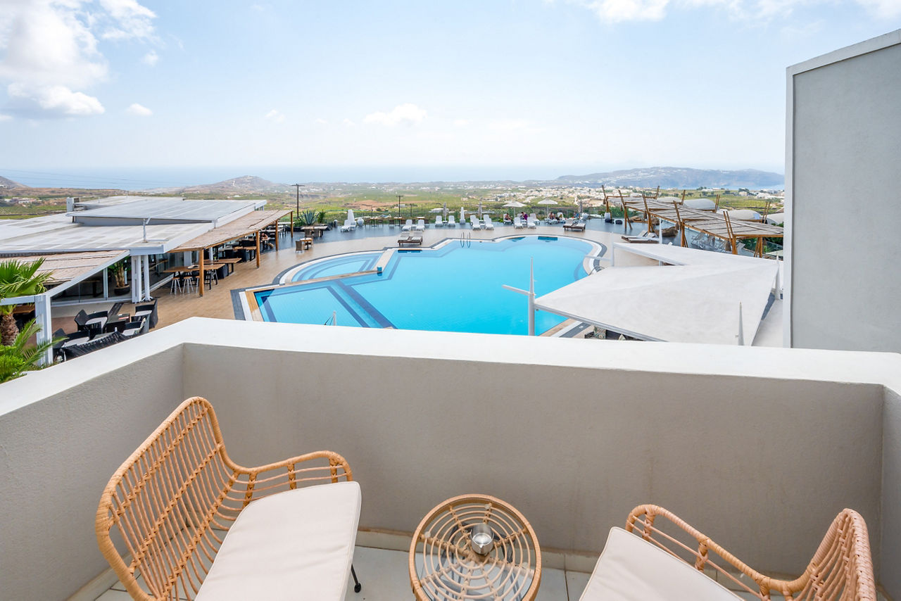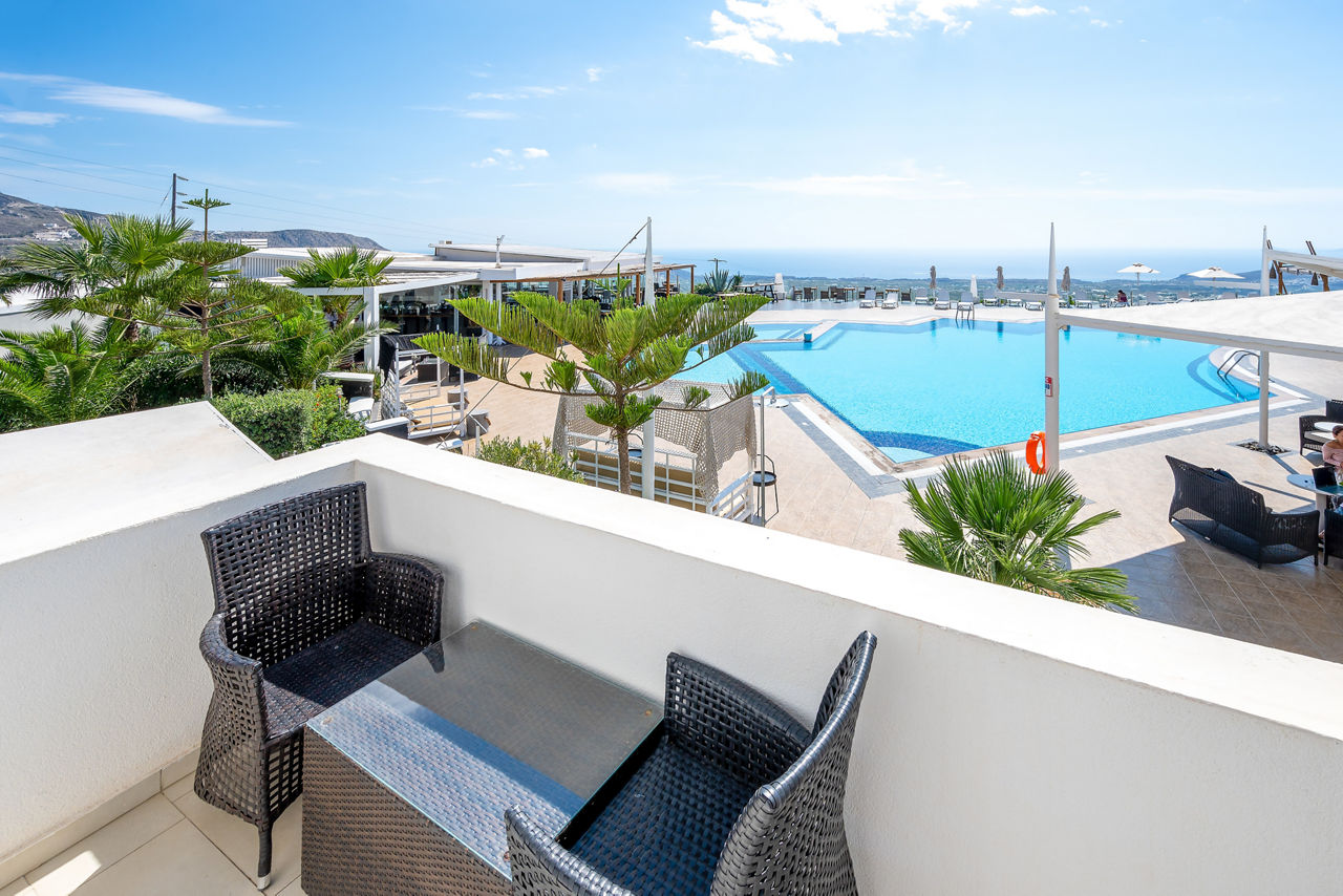 With its hillside location, it’ll come as no surprise Smy Orizontes Santorini embraces panoramic views of the island and surrounding Aegean Sea. Relax around one of the largest pool areas on the island and enjoy the breathtaking views with a cool drink in hand. Or why not make the most of the hotel’s convenient location? The laid-back village of Pyrgos is a stroll away, or why not hop on a local bus to explore the capital of Santorini, Fira! However you choose to spend your day, end it by unwinding in a modern yet traditionally styled room, which come with the little touches to ensure a comfortable stay. If you fancy treating yourself, why not upgrade your room and wake up to a glorious sea view?