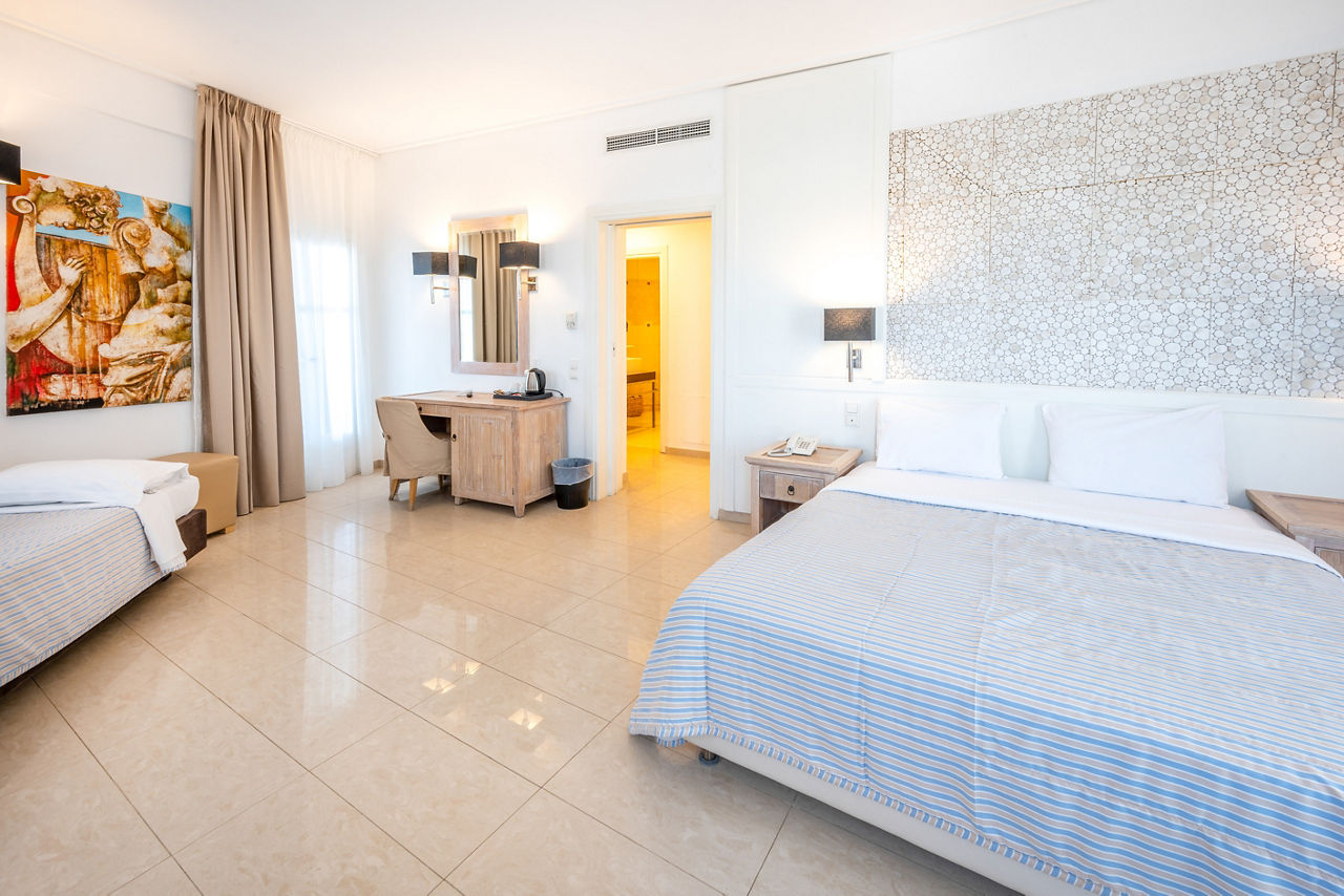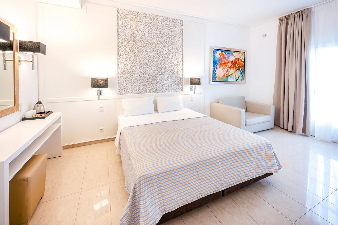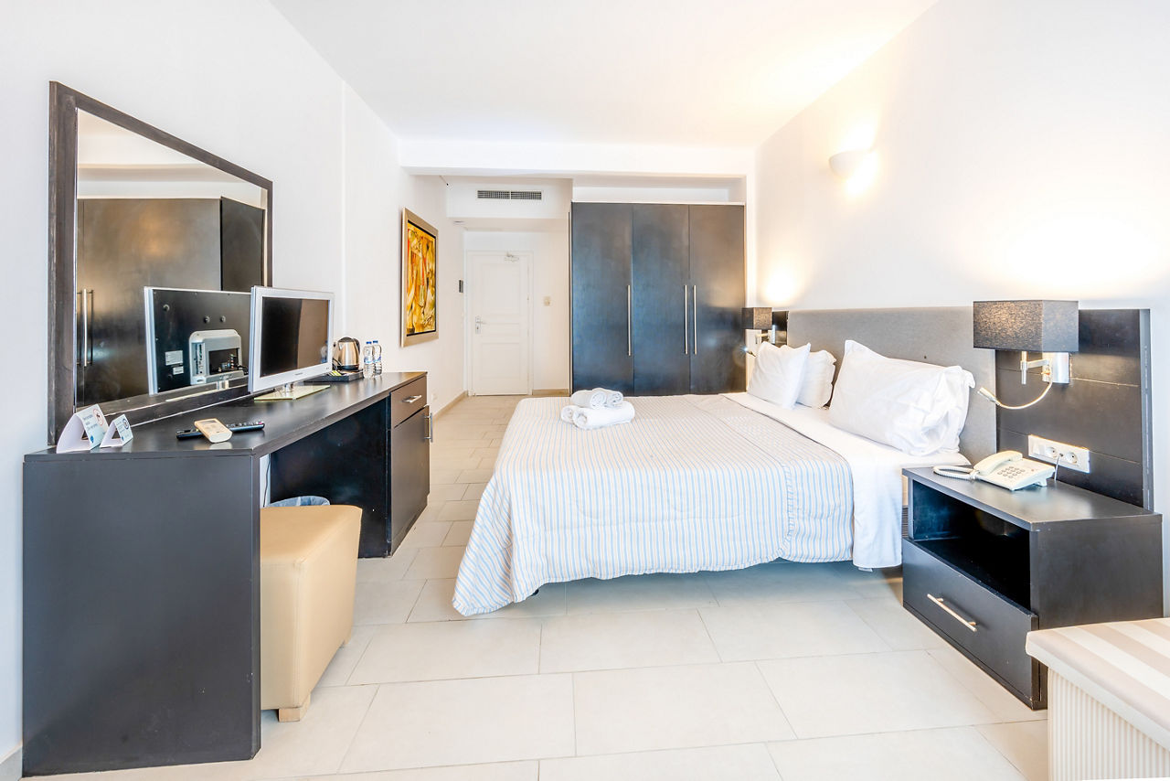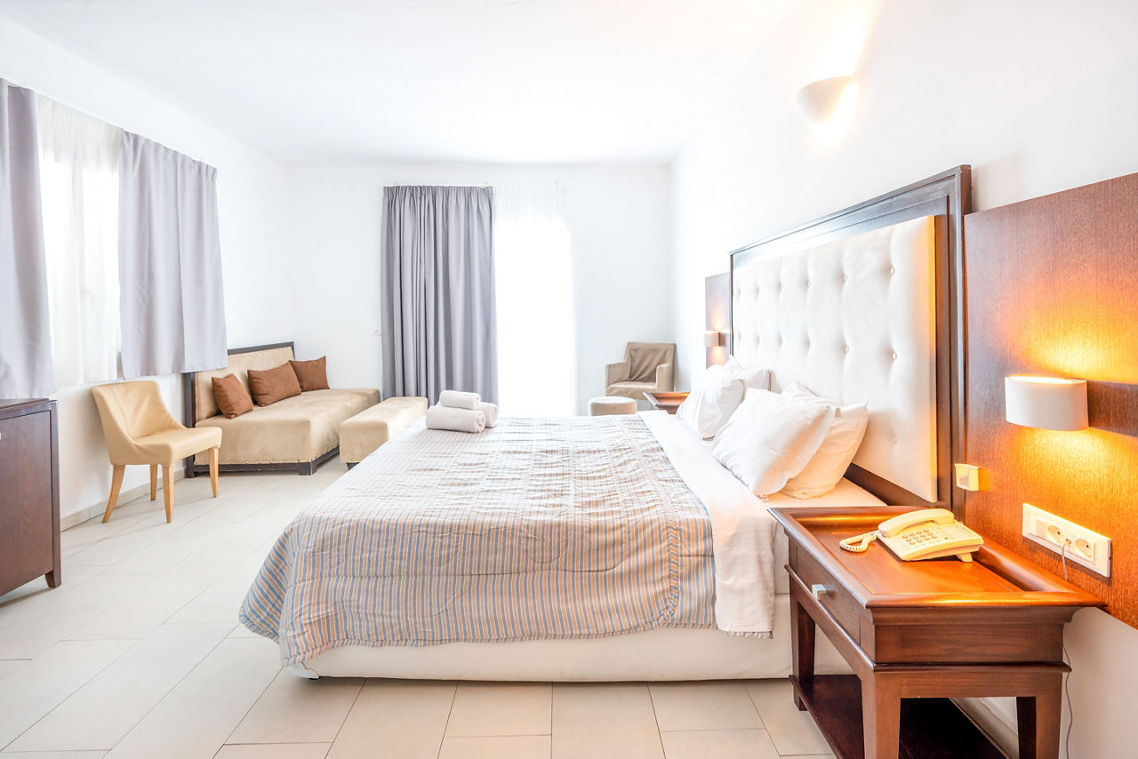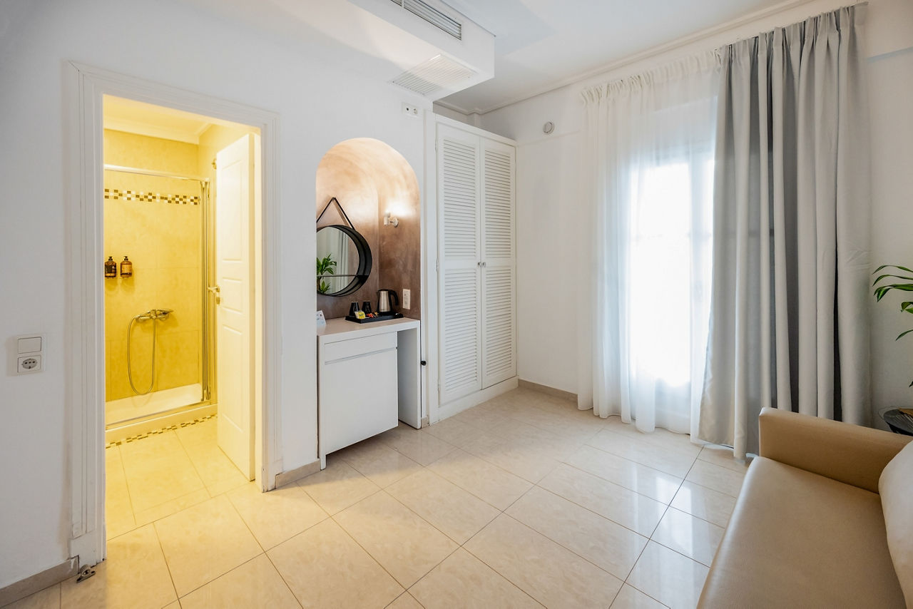 With its hillside location, it’ll come as no surprise Smy Orizontes Santorini embraces panoramic views of the island and surrounding Aegean Sea. Relax around one of the largest pool areas on the island and enjoy the breathtaking views with a cool drink in hand. Or why not make the most of the hotel’s convenient location? The laid-back village of Pyrgos is a stroll away, or why not hop on a local bus to explore the capital of Santorini, Fira! However you choose to spend your day, end it by unwinding in a modern yet traditionally styled room, which come with the little touches to ensure a comfortable stay. If you fancy treating yourself, why not upgrade your room and wake up to a glorious sea view?