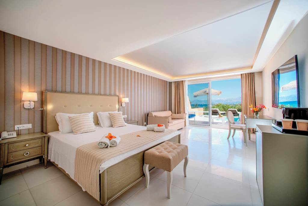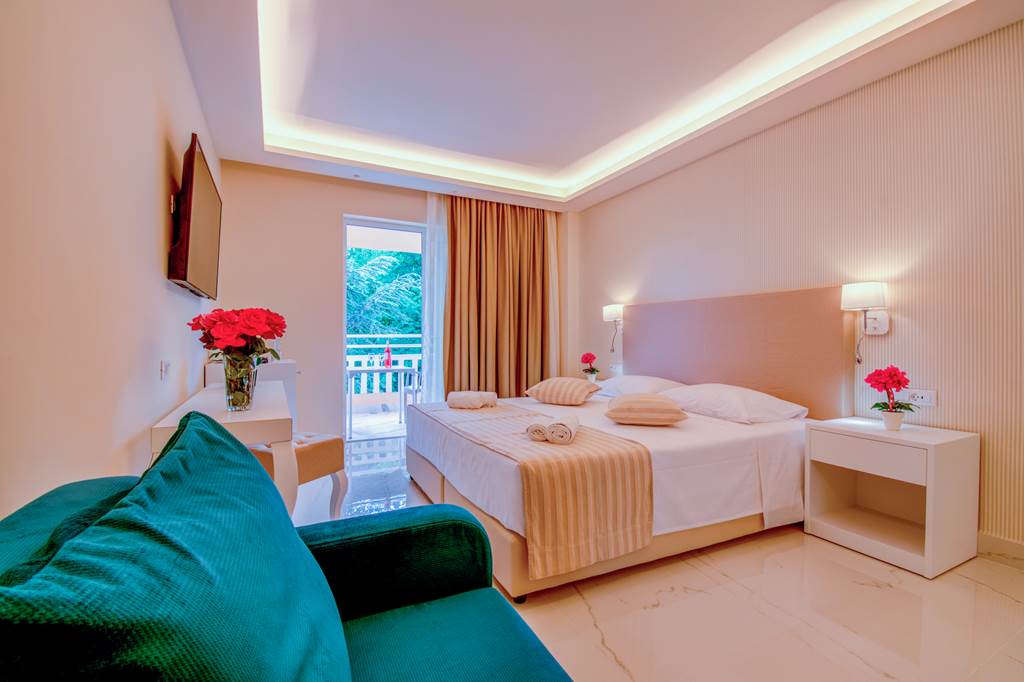 Surrounded by lush greenery and with direct access to a small sand-and-shingle beach, Ibiscus Corfu Hotel boasts a picturesque postcode. Pitch up around the sprawling poolside and soak up the sunshine, or go for a dip in the sea. You’ll be on All Inclusive as standard, so tasty buffet meals are a done deal. On an evening, enjoy the entertainment, which includes a weekly Greek folklore night. If you want to get out and explore, you’re not far from Roda resort centre. This small fishing town is brimming with charm.