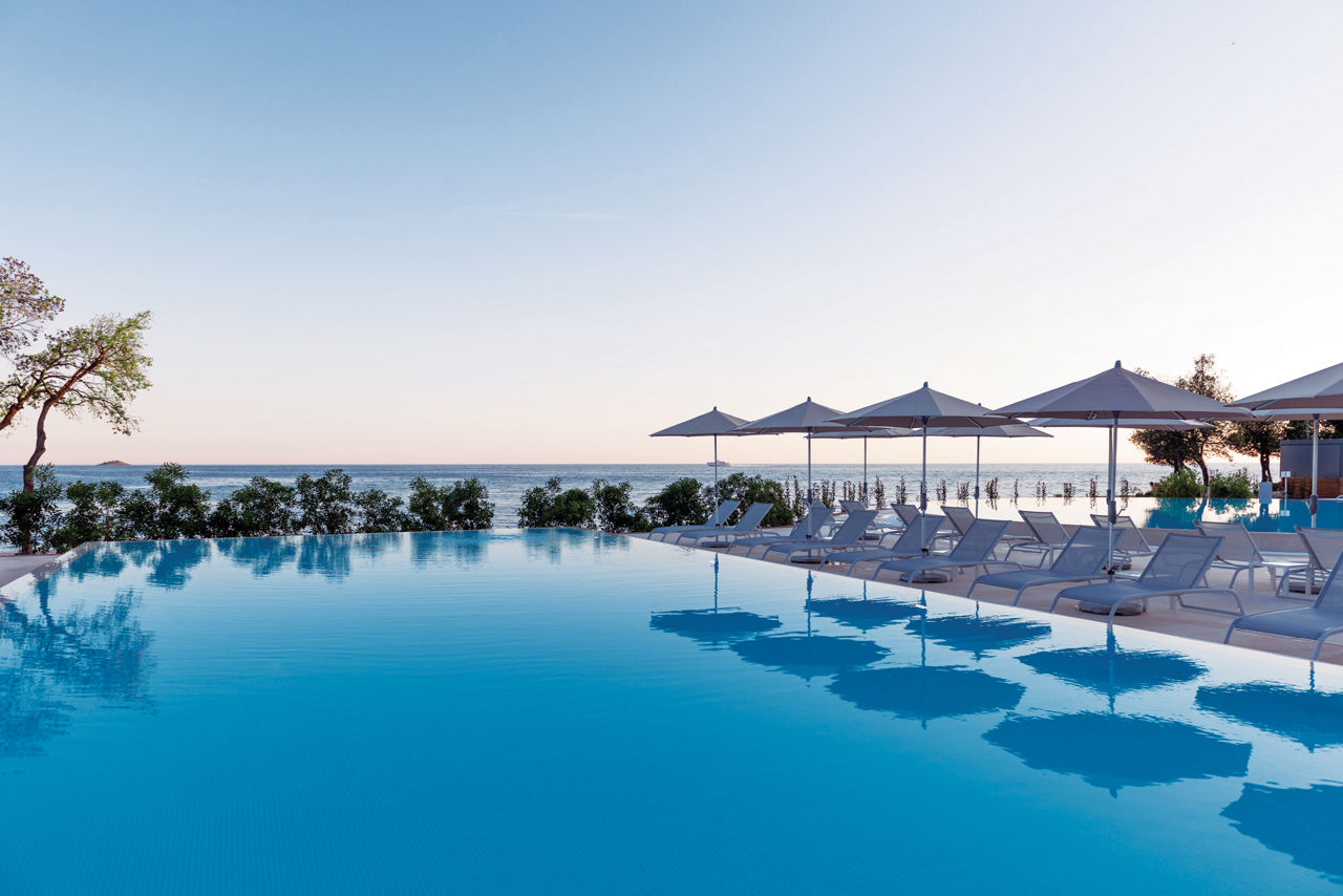 Resort Amarin located near the picturesque town of Rovinj offers a relaxed escape by the Adriatic Sea. The resort features a beautiful pebble beach, perfect for unwinding by the water, along with outdoor pools for those looking to take a refreshing dip. Guests can also enjoy a variety of sports facilities including beach volleyball and tennis courts. For dining, the resort offers a range of restaurants, providing diverse culinary experiences to suit every taste. With comfortable accommodations and a peaceful atmosphere, Resort Amarin is ideal for those looking to enjoy both relaxation and outdoor activities in a stunning coastal setting.