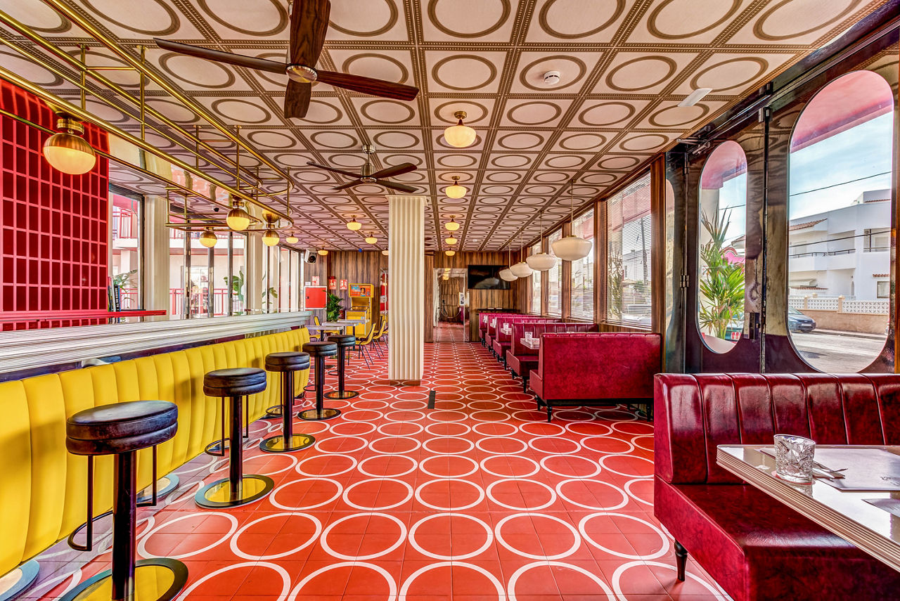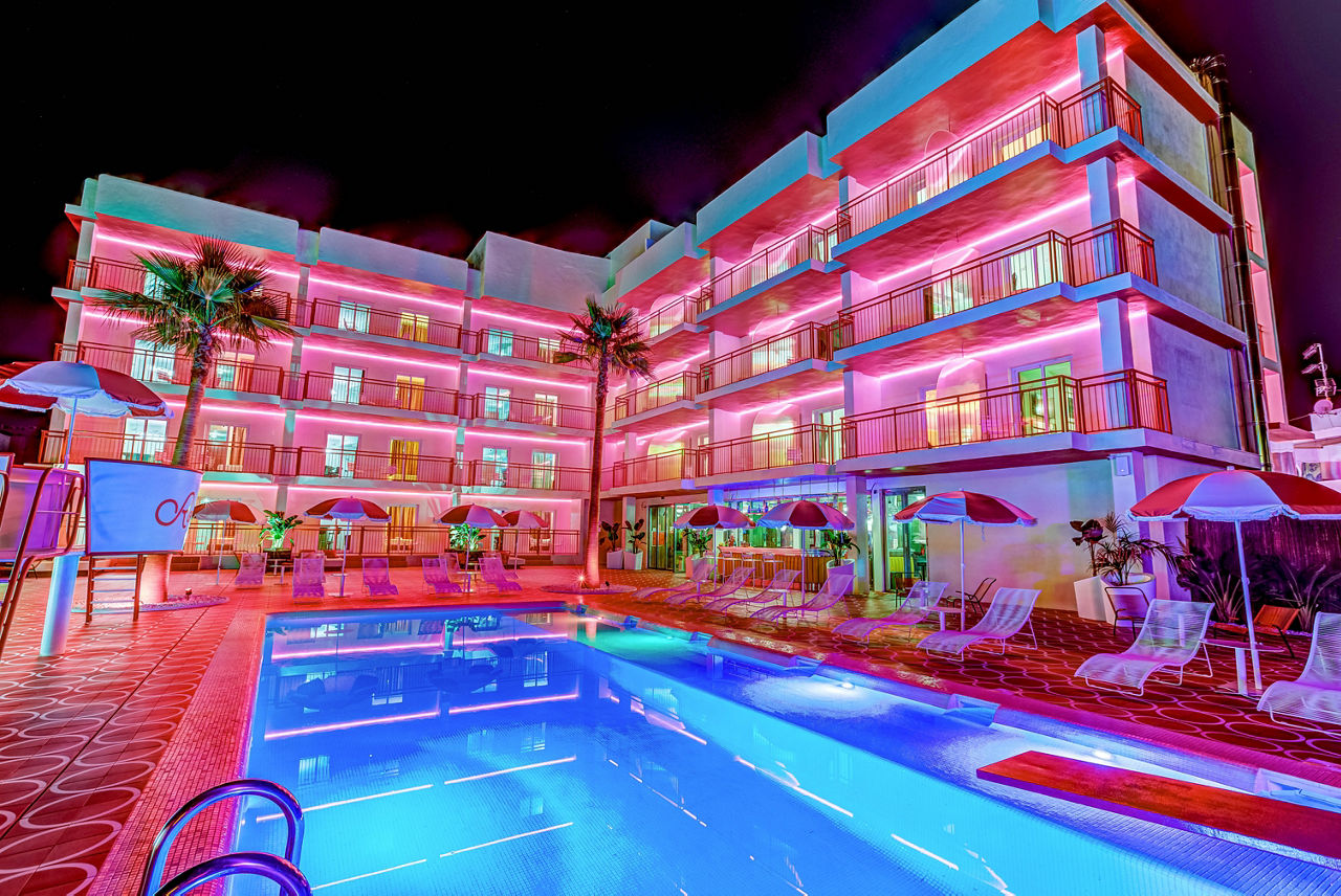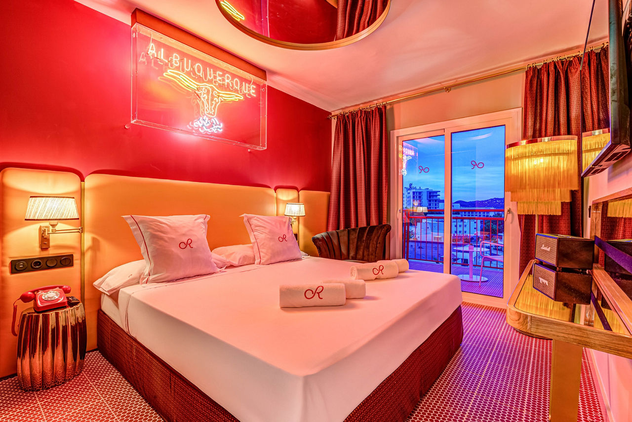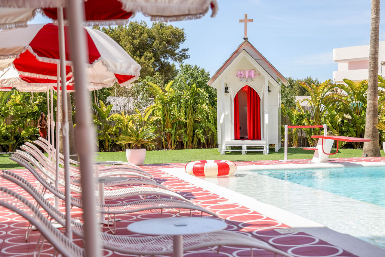 Move over Marilyn, the fifties flick scene has a new star. Romeos Ibiza took the Route 66 brief and knocked it out the park with its heart-shaped whirlpool, candy-striped parasols and NYC-esque neon signs. Yep, that’s a wedding chapel too. Swing by the diner for a hotdog and shake before you tie the knot.
