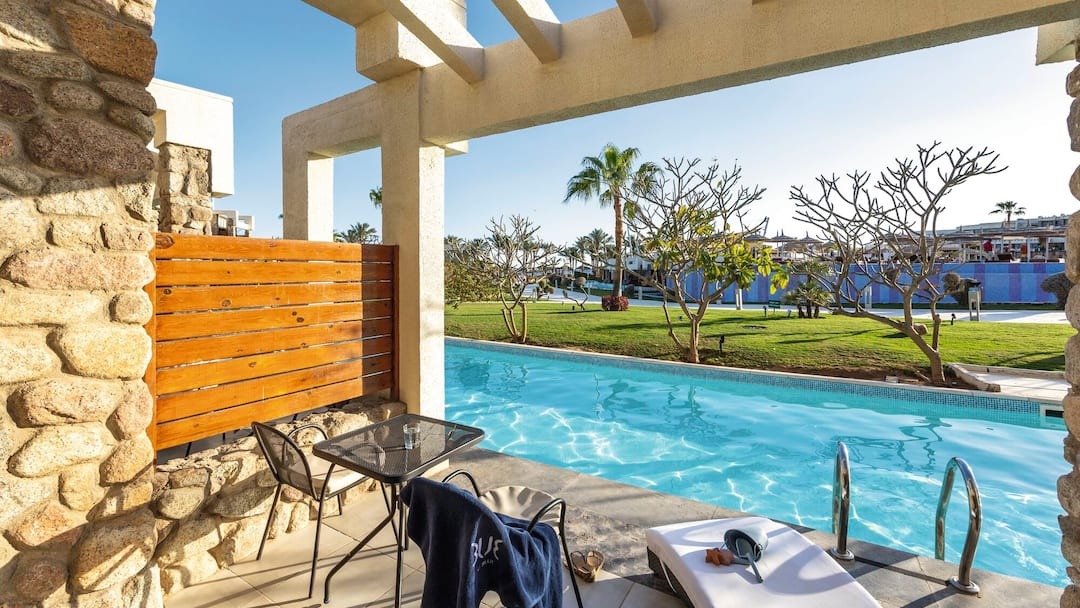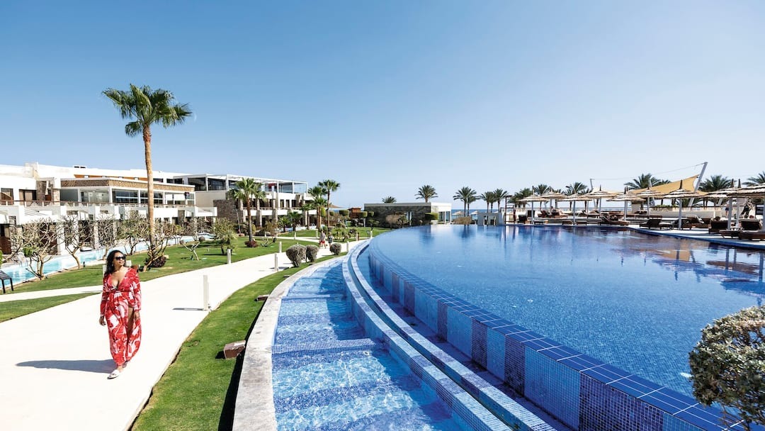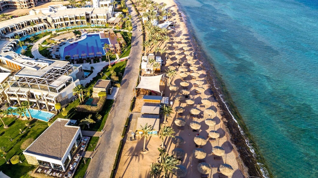 This luxurious beachfront escape is nestled along the sparkling shores of the Red Sea. This five-star retreat offers everything from private pools and plush swim-up suites to panoramic sea views and serene spa experiences.