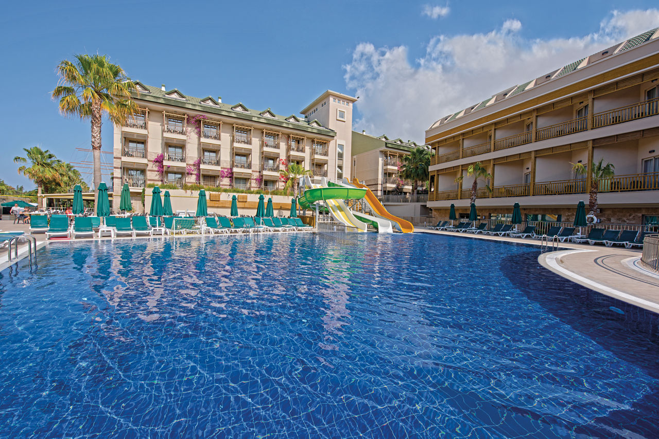 The Can Garden Resort is a warm and friendly property which is located outside of Side resort centre and a just short shuttle bus ride away from the hotel’s beach. The outdoor pool area is a particular highlight of this all inclusive hotel, providing not only a place for relaxation but some fun for the little ones in the form of a handful of slides! Aside from the pool scene, the hotel has a range of dining options sure to satisfy the fussiest of eaters, while the entertainment and activities available complete the hotel’s well-rounded offering. A great choice for couples and families alike looking for a great value holiday.