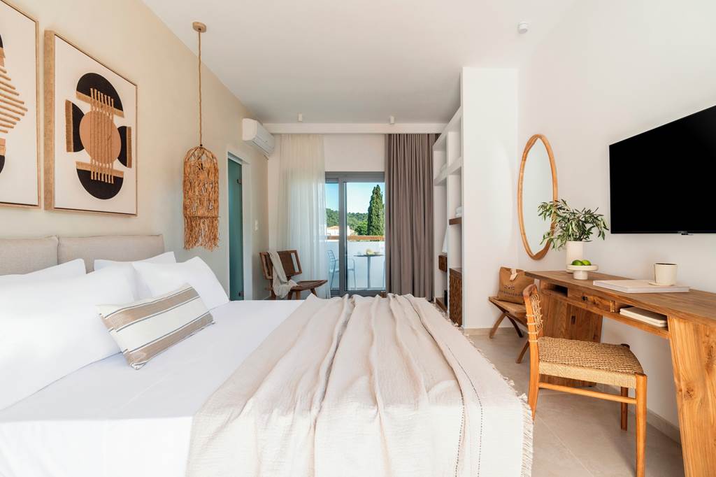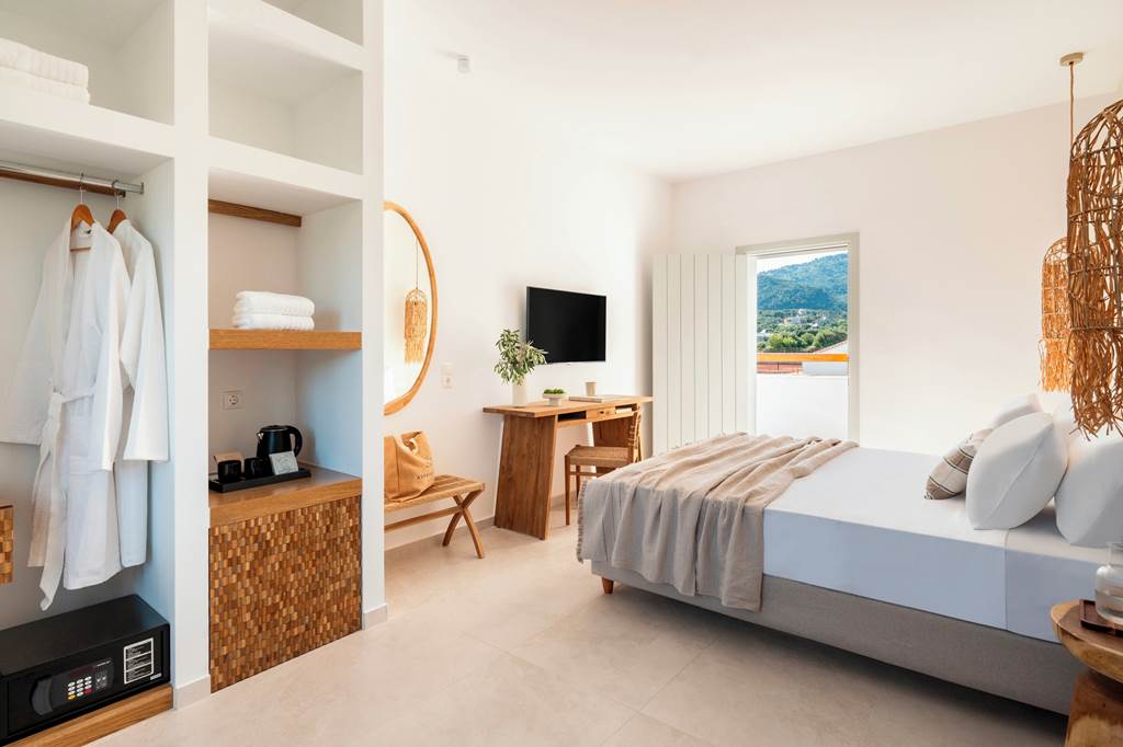 Aspronissos Skiathos is ideal for couples, set in a peaceful and relaxed location, with the lively harbour of Skiathos Town within walking distance. Enjoy a delightful rooftop breakfast area, complemented by exceptional staff service and a modern design throughout the hotel. Fully refurbished, the hotel features a chilled pool area, a pool bar for refreshing drinks, and comfortable rooms that make for a great base to explore this lush green island from.