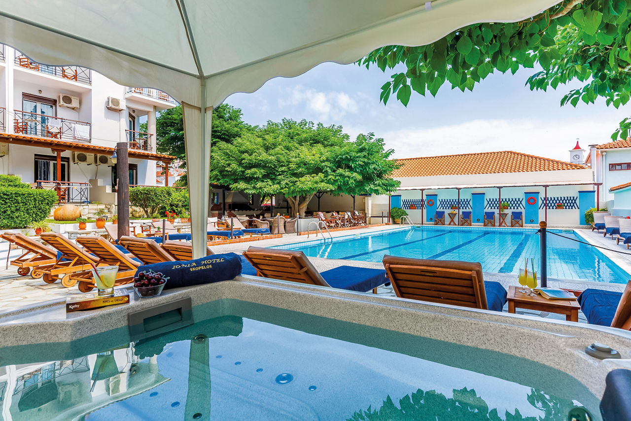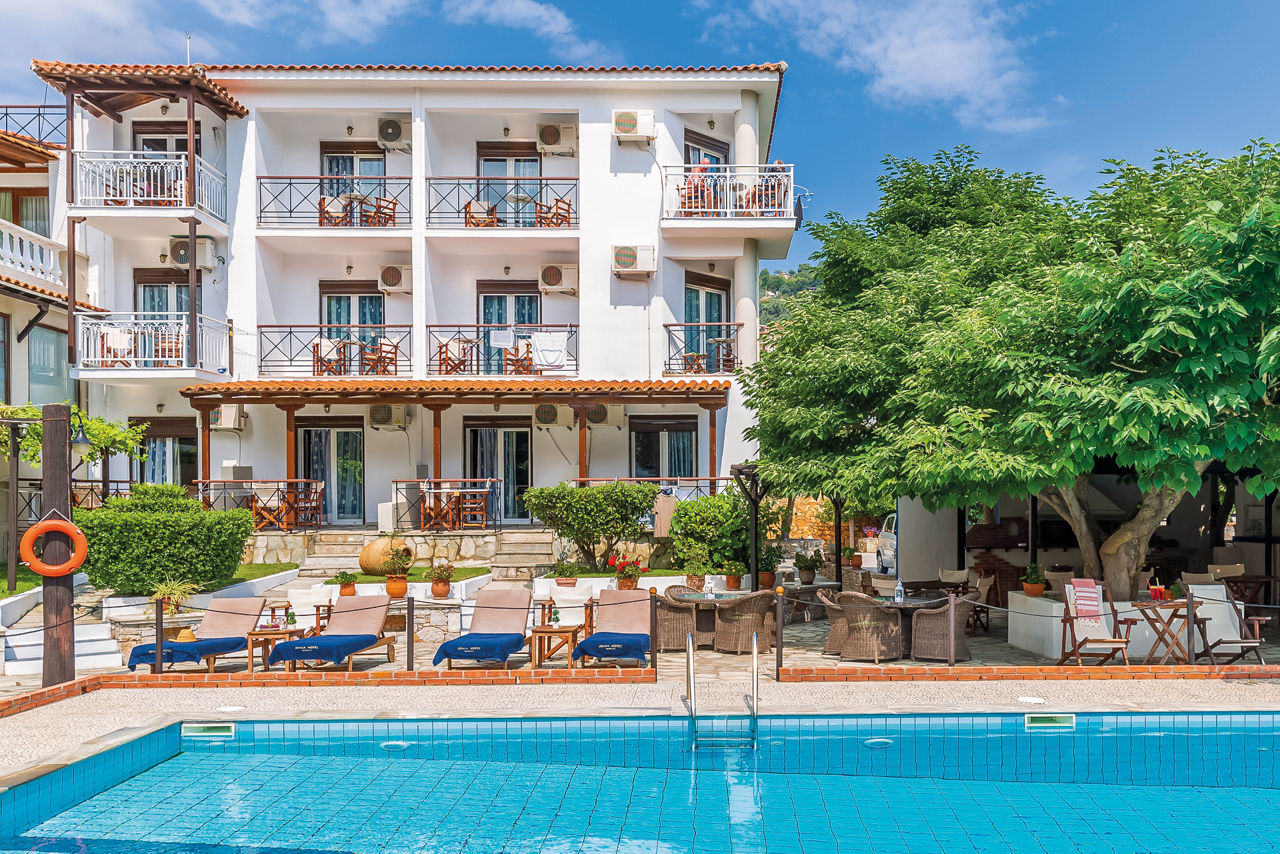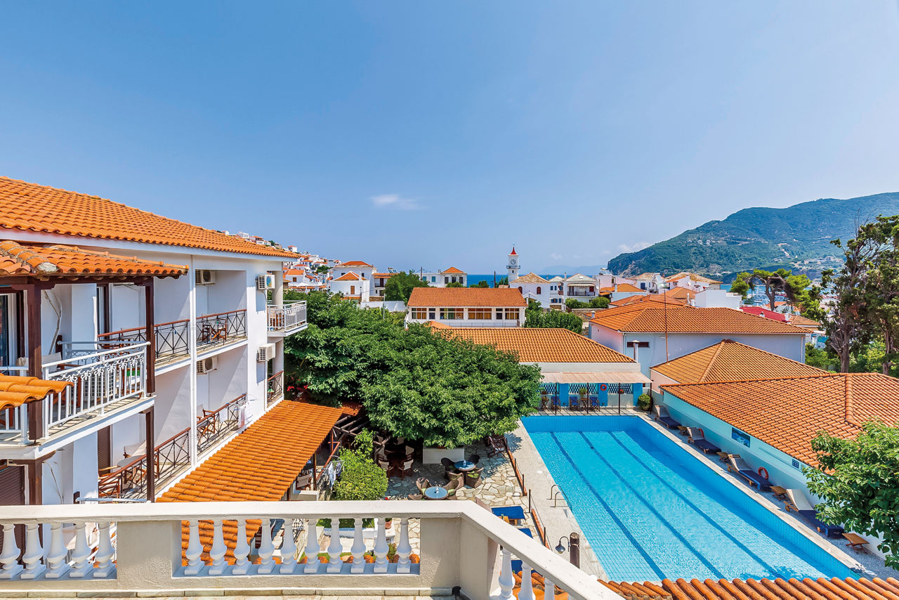 Sat in the heart of Skopelos Town, the Ionia Hotel is your Greek-as-it-gets island hideaway. Just a short stroll from the harbour, this family-run gem blends traditional architecture with warm hospitality – think terracotta rooftops, leafy gardens and a laidback terrace that’s perfect for lazy afternoons. Start your day with a hearty breakfast, then wander through the cobbled streets to discover Skopelos' tavernas, boutiques and postcard-worthy views. The simple yet comfortable rooms come with either a balcony or terrace – ideal for sipping your morning coffee or a glass of local wine in the evening.
