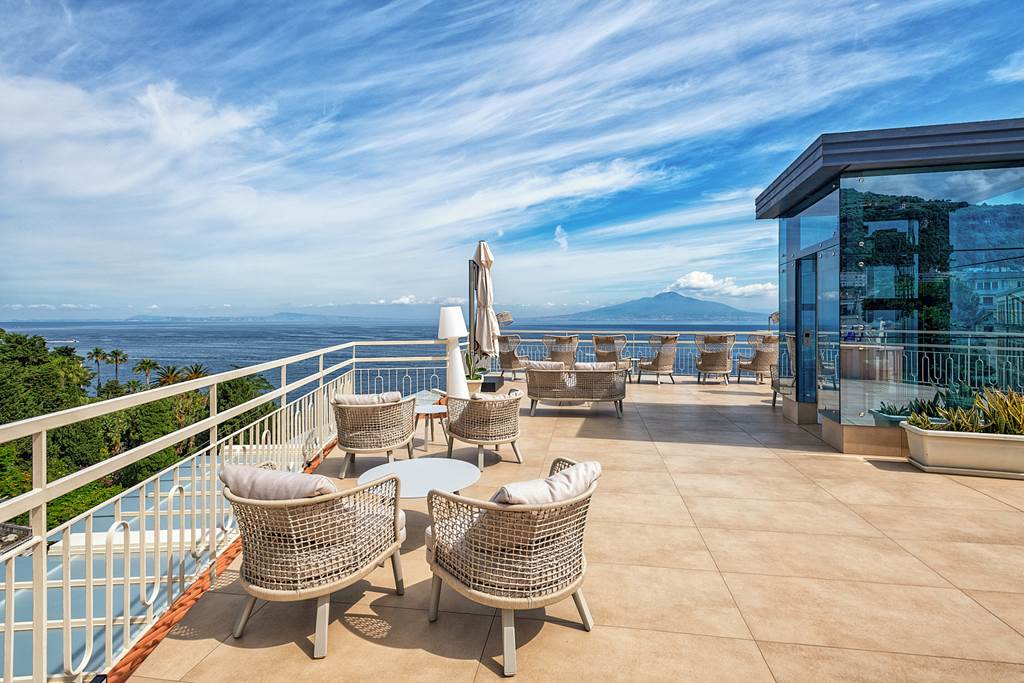 The small and friendly Hotel Regina is in a central location, tucked away down a quiet street, but well positioned to explore all that Sorrento has to offer. The Regina Hotel offers stunning views from the rooftop terrace area, which looks out onto the bay of Naples and Mount Vesuvius. Room are bright and modern and are the perfect place to relax after a day spent enjoying the beauty of Sorrento.