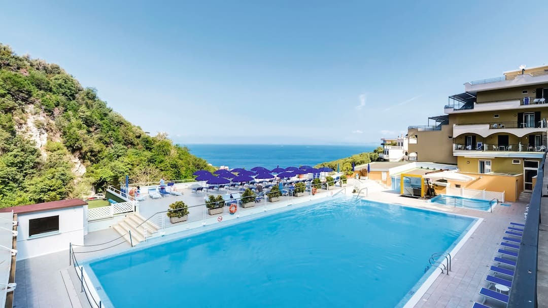 Outdoor pool - This pool overlooks the Bay of Naples and the neighbouring island and is open March to November and heated March to April and October to November. permitting. Sunbeds and parasols align the poolside, plus pool towels are available.