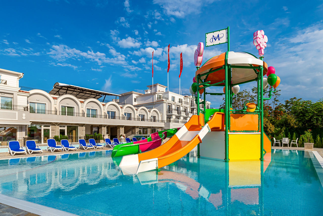 Martinez Hotel is a true standout on the Sozopol coastline. With its bright white facades, sparkling turquoise pools, vibrant splash park, and gardens filled with Bulgarian roses in every shade of pink, this beachfront retreat is as beautiful as it is welcoming. Its location is just as impressive. Set right on the beach, you're only steps away from golden sands and calm waves—and just a short stroll from the cobbled streets, tempting restaurants, and laid-back charm of Sozopol Old Town. Or simply stay put—soak up the sun on the terrace and enjoy all the perks of your All Inclusive stay.