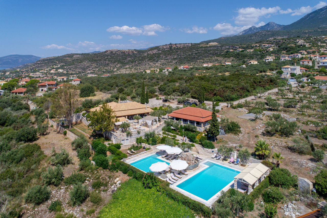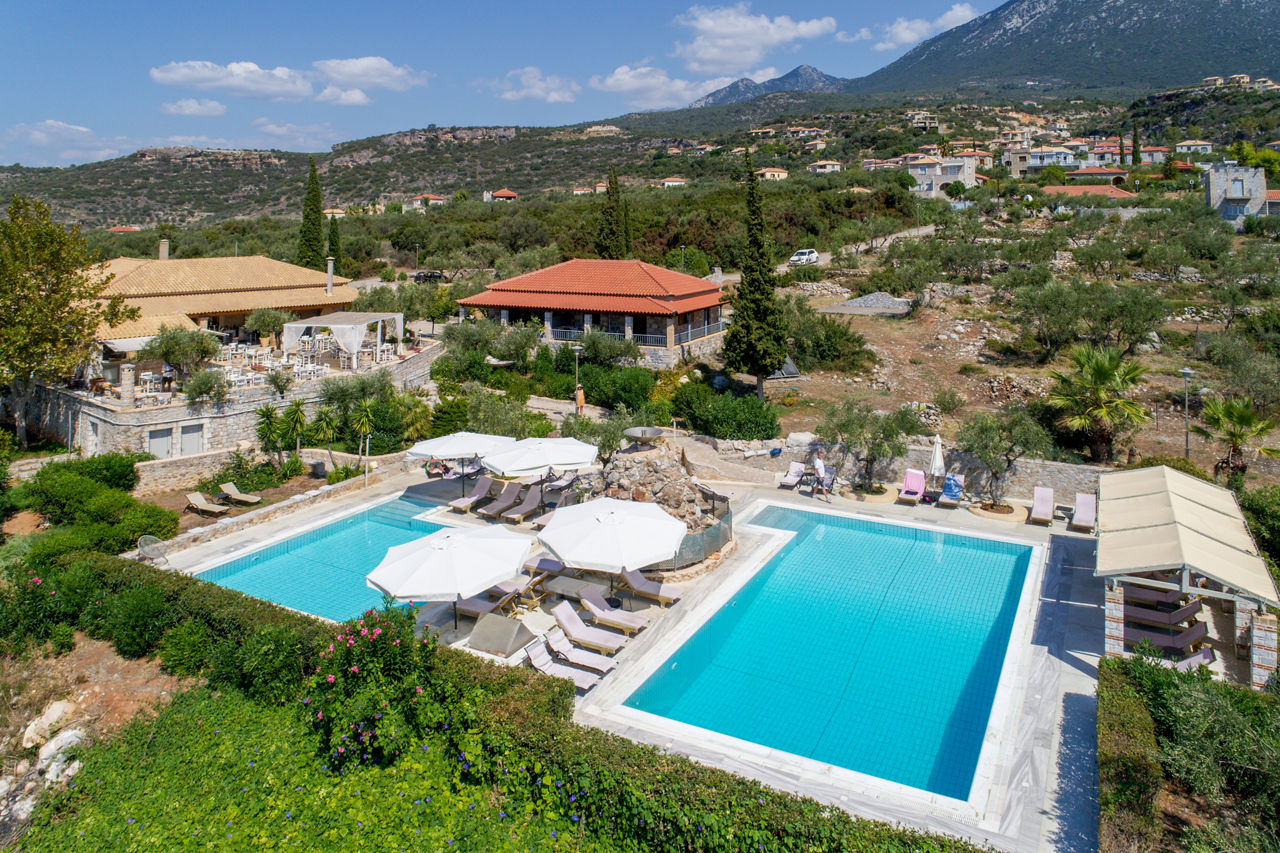 The Maniatiko Village is a serene retreat, located in the hills above Stoupa and backed by rolling green hills and the Taygetos mountains. A collection of traditionally styled houses representing local Mani architecture, accommodation is spacious and well-equipped. On-site there is a large outdoor pool area and terrace, ideal for rest and relaxation and the restaurant serves up local specialities of the region, using ingredients from the gardens.