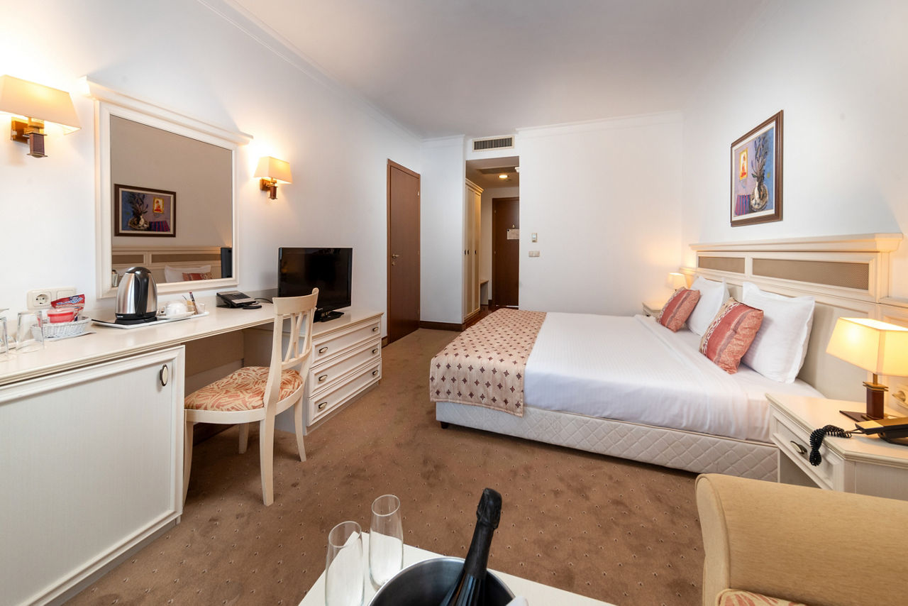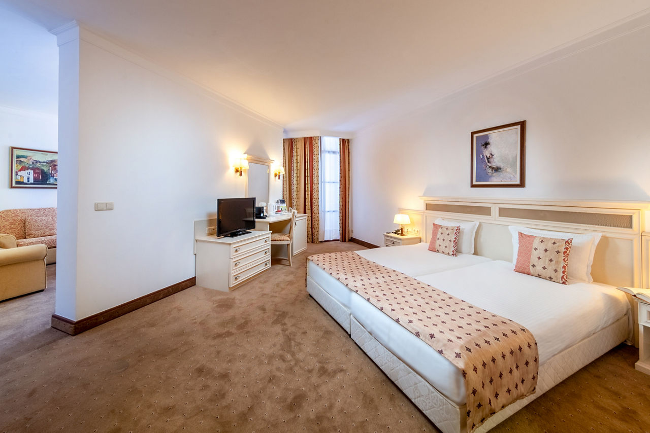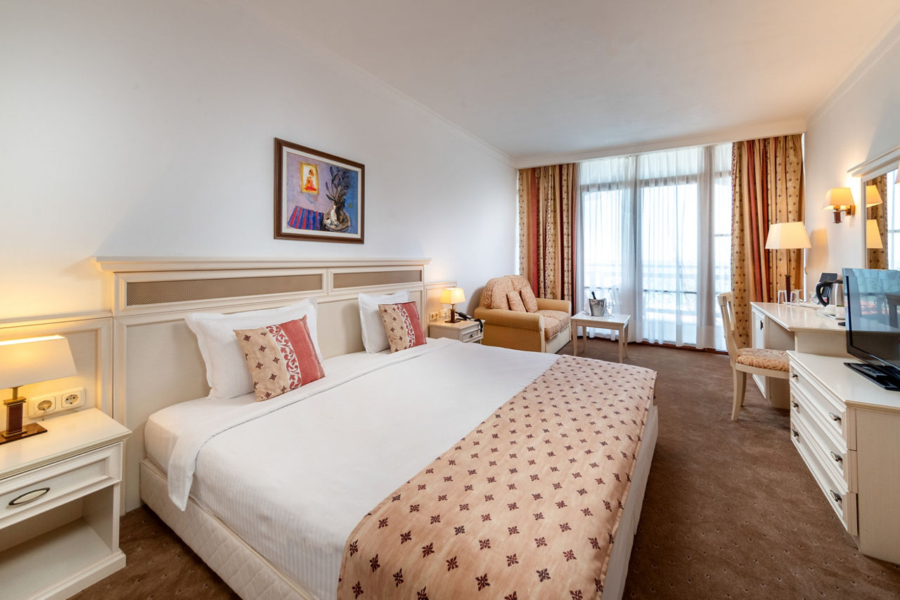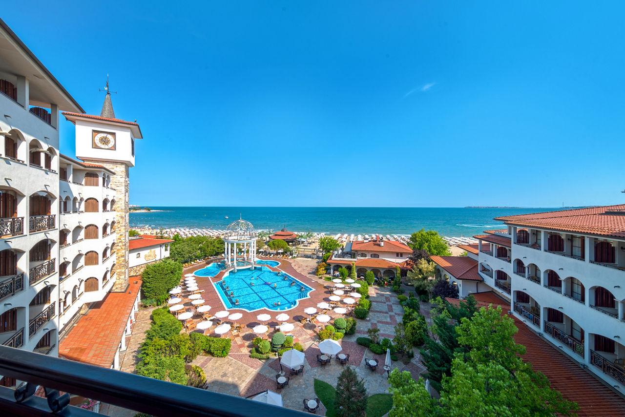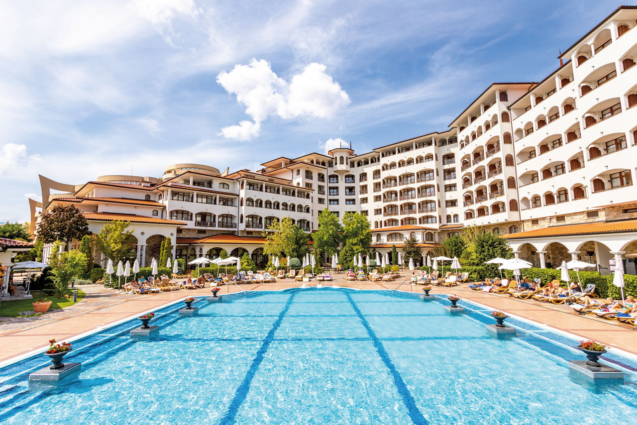 Helena Sands is set in a great location right on the beachfront in Sunny Beach, surrounded by well-kept gardens and offering lovely sea views. The hotel features a range of facilities including a large outdoor pool, separate pools for children, a wellness spa, and several dining options. There are also plenty of activities during the day to suit all ages. Rooms are spacious and traditionally furnished, with artwork and sculptures adding character throughout the property. In the evening, guests can enjoy live music and shows at the hotel or take a short walk to nearby bars and local nightlife.