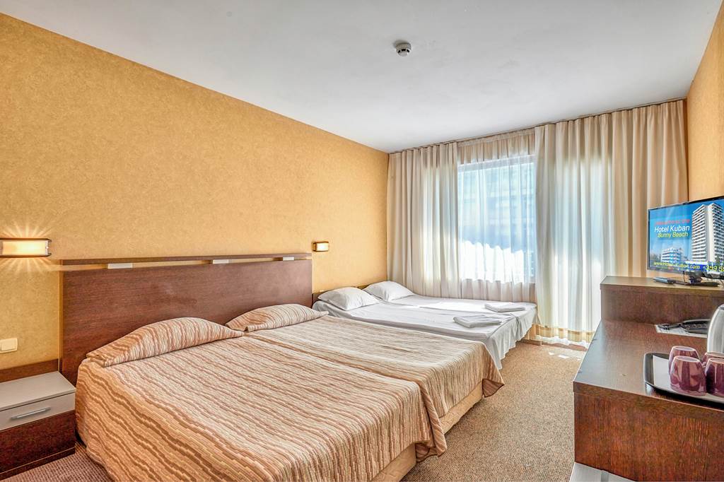 Kuban Hotel enjoys a privileged location close to the beach and resort centre and offers the ideal setting to discover Sunny Beach and the Black Sea Coast. The hotel is a great choice for families, with a pool including seven exciting water slides for all the family to enjoy and a children's splash park. There's plenty to keep everyone occupied both on site and on the doorstep. The hotel has a well-equipped games centre and an air conditioned gym with a small sauna. Just a few steps away from the hotel, you can enjoy an exciting range of restaurants, bars and clubs, or explore the shopping centres nearby.