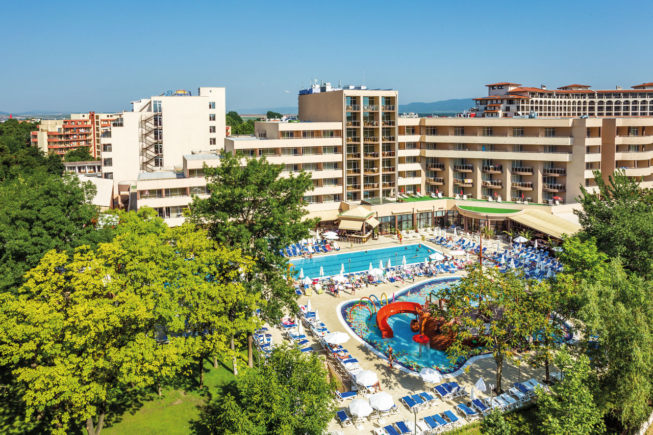 Looking for a fun-filled holiday in lively Sunny Beach? Laguna Park & Aqua Club ticks all the boxes! With four epic outdoor pools, super waterslides, and a pirate ship splash park, we'd call that guaranteed fun in the sun! Pick from a range of rooms, apartments and studios to suit who’s in tow. You’ll also be on All Inclusive as standard so mealtimes couldn’t be more of a doddle. Head out to the nearby beach to feel the sand between your toes, or stay onsite for the children’s club and mini-golf.