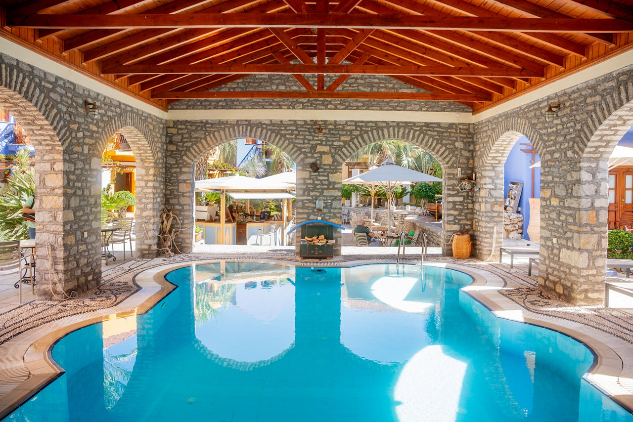 Iapetos Village Hotel offers a blend of traditional charm and modern luxury. Nestled amongst lush gardens, this boutique hotel features bright and relaxing rooms in a house style accommodation. Guests can lounge by the pool and enjoy easy access to Symi Town, with vibrant culture on your doorstep, making Iapetos Village Hotel the perfect choice for an authentic Symi island experience.