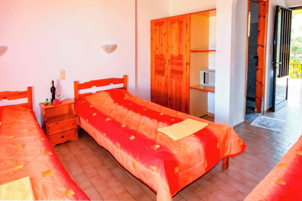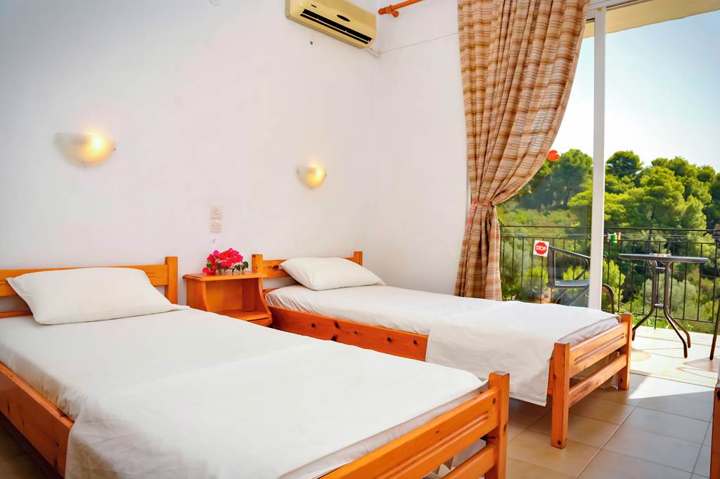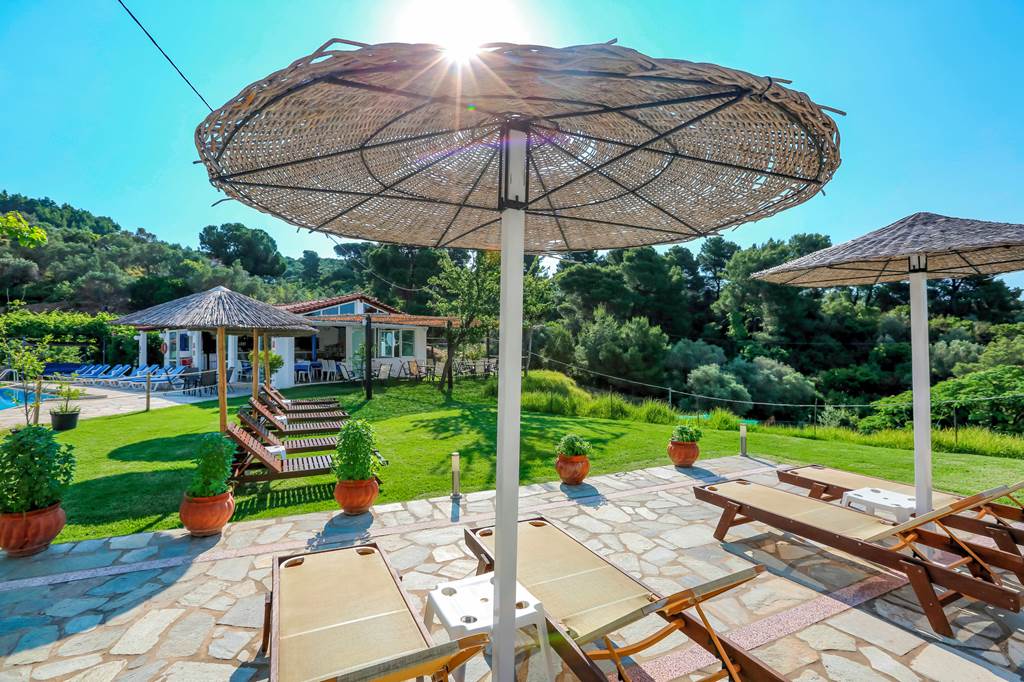Get an authentic taste of Greece when you stay at these friendly, family-run studios. Sunbathe on the pool terrace or leaf through the pages of a book on the lush green lawns. And thanks to its prime location, you can take in panoramic views over Troulos below. It’s the ideal base for your next adventure! Just a short stroll down the hill, you’ll find a handful of traditional tavernas and café-bars. You can check out the serene stretch of Troulos Beach and its selection of shops and bars. Or why not head into the capital, Skiathos Town, for a night out?