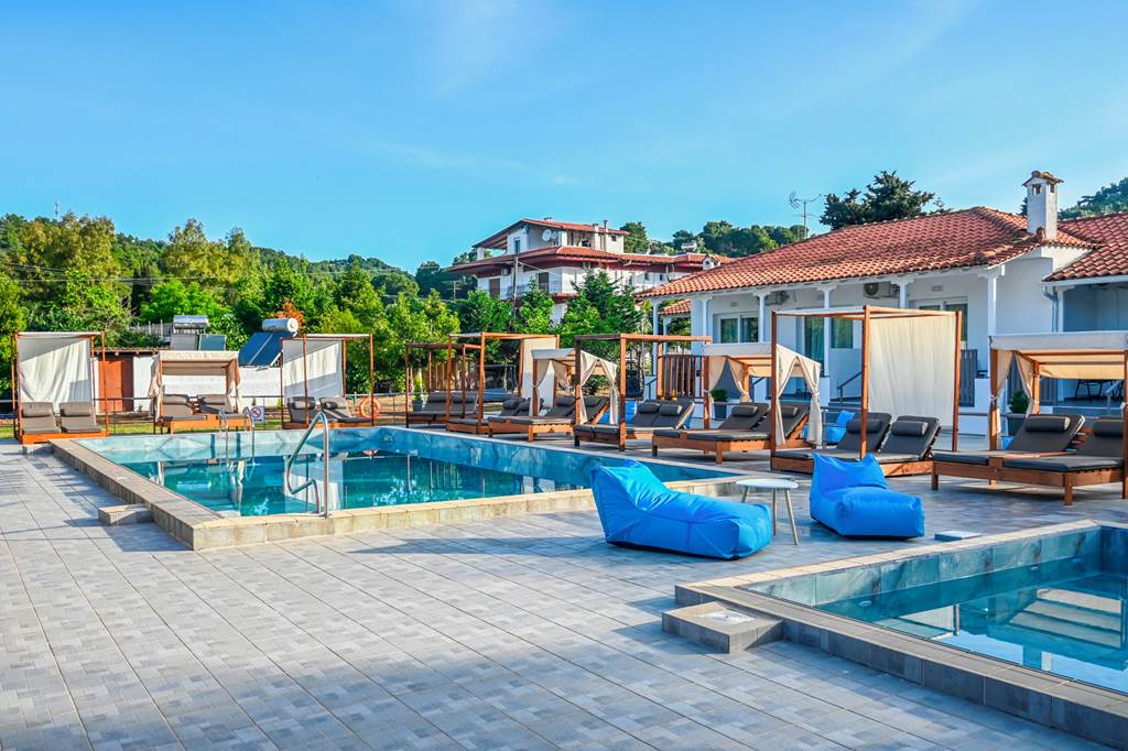 Looking for a fab base for exploring Troulos Bay and beyond? Set amongst lush green gardens, comfortable and modern rooms will welcome you at Giabeos Skiathos Island. Boasting a spacious pool area with plenty of sunbeds for relaxing in the warm Greek sun. The property is close to charming local tavernas and bars. An ideal base for couples, families, and friends looking for a relaxing stay.