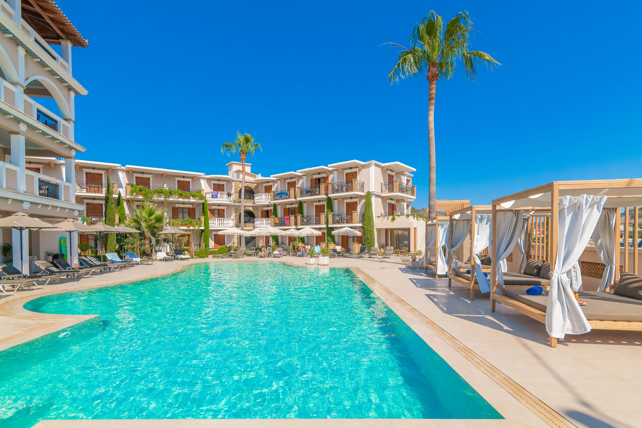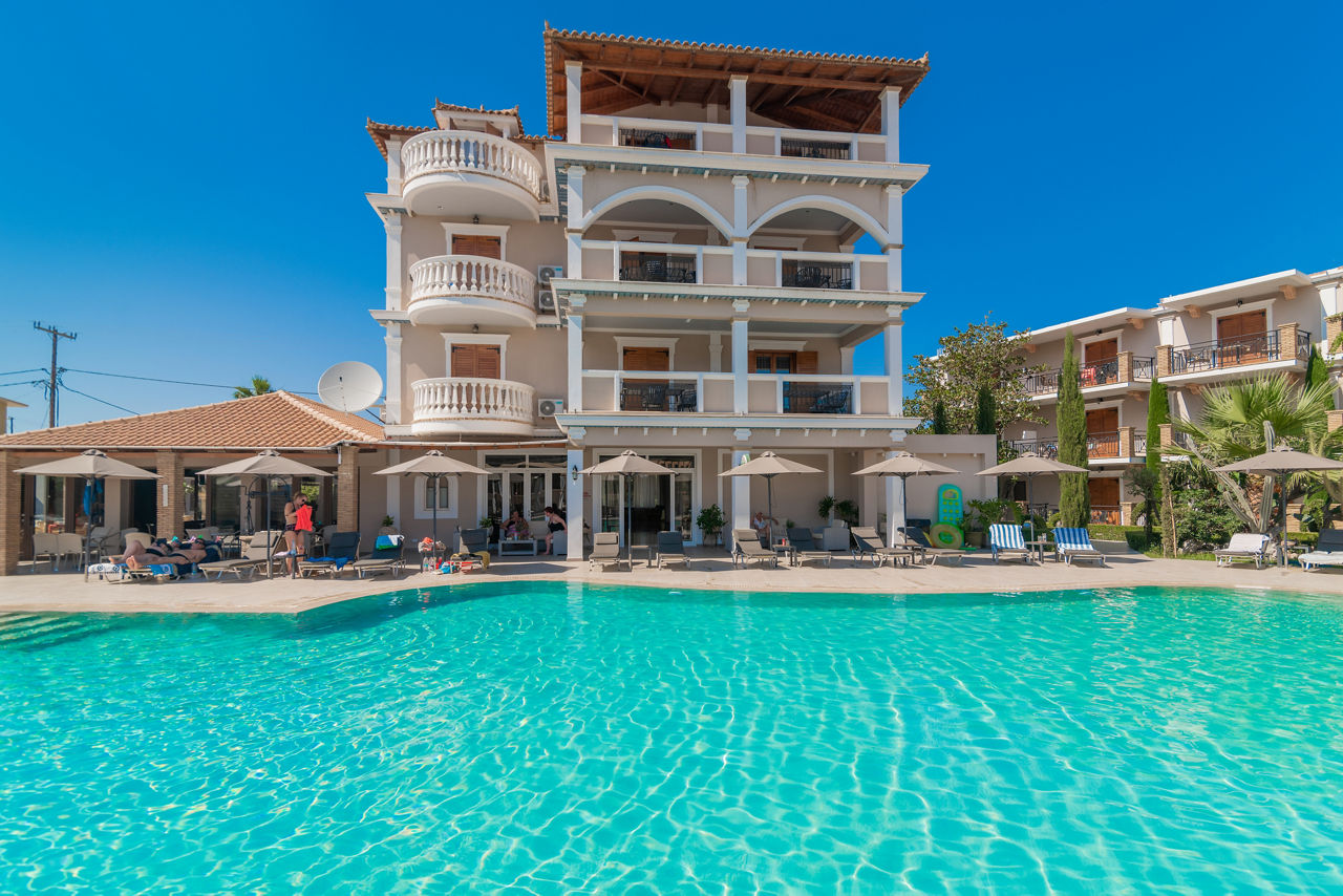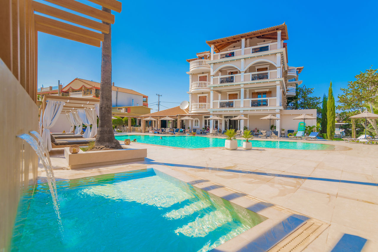 Located in the heart of Tsilivi and close to the beach, Plaza Pallas couldn’t be in a better position. Surrounded by well-kept gardens the outdoor pool is a lovely place to relax during the day, whilst the Olive Garden restaurant and Sambuca bar are ready to fill the evenings. Friends and families will enjoy the welcoming atmosphere here, along with the efficient service and facilities on offer.